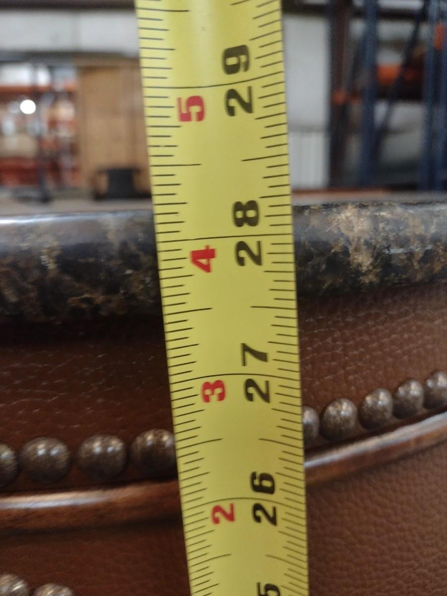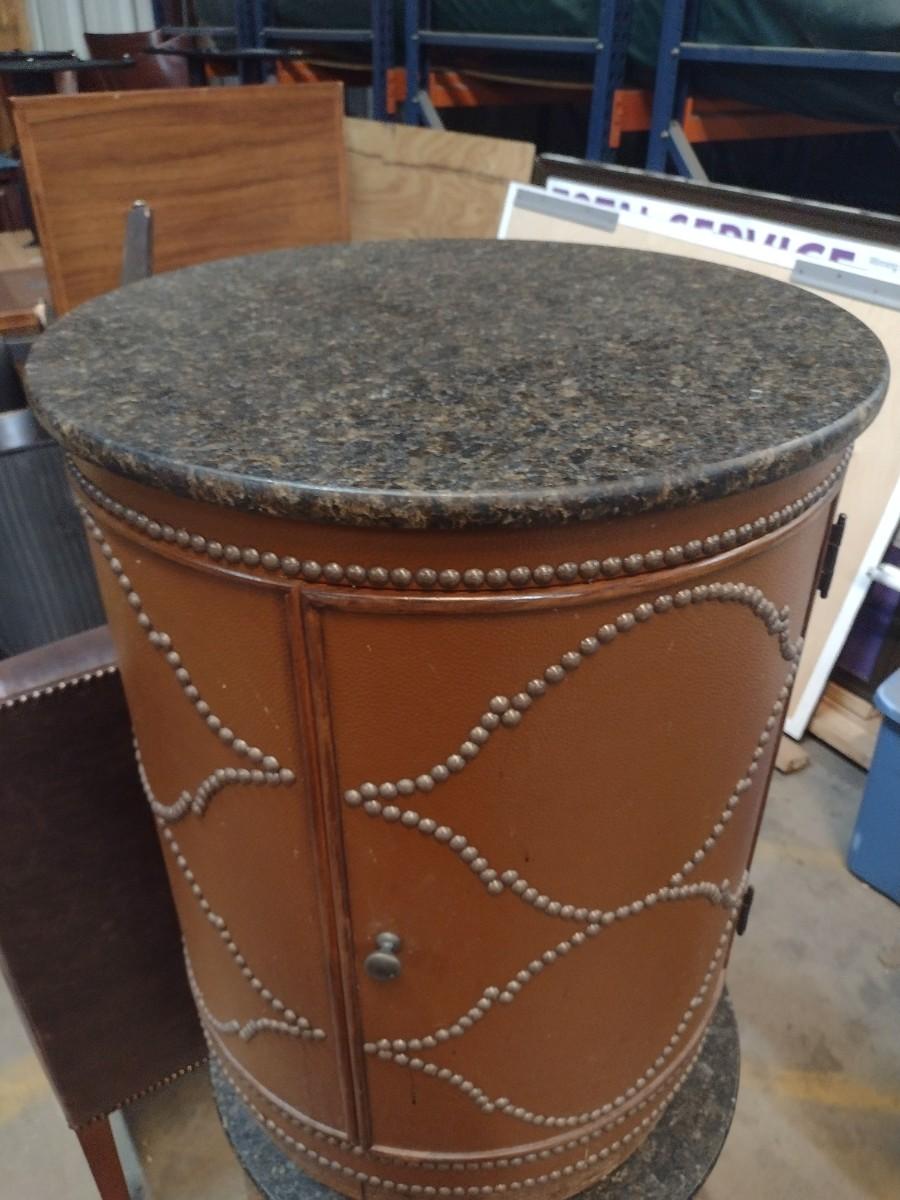 Pair of Marble Top Leather Design Finish Brass Tack Accent Round Side Tables