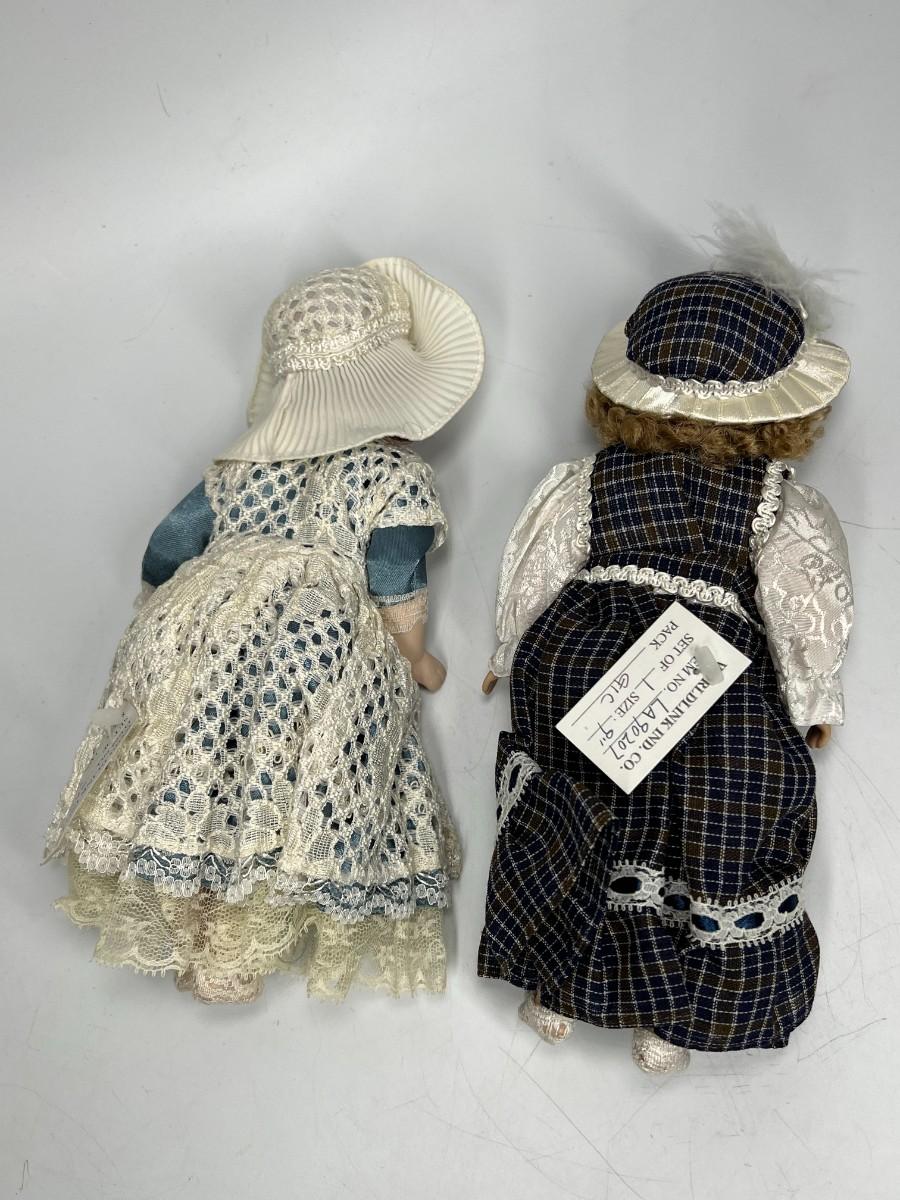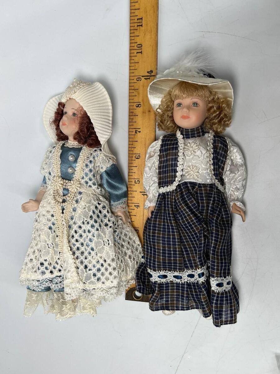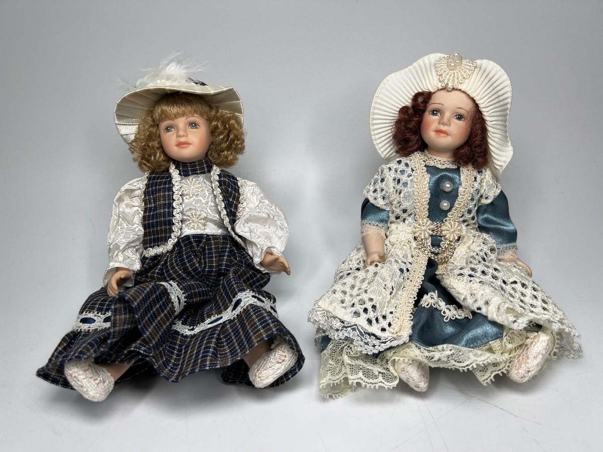 Pair of 9" Porcelain Dolls. Display nicely. Newer art dolls, not vintage.