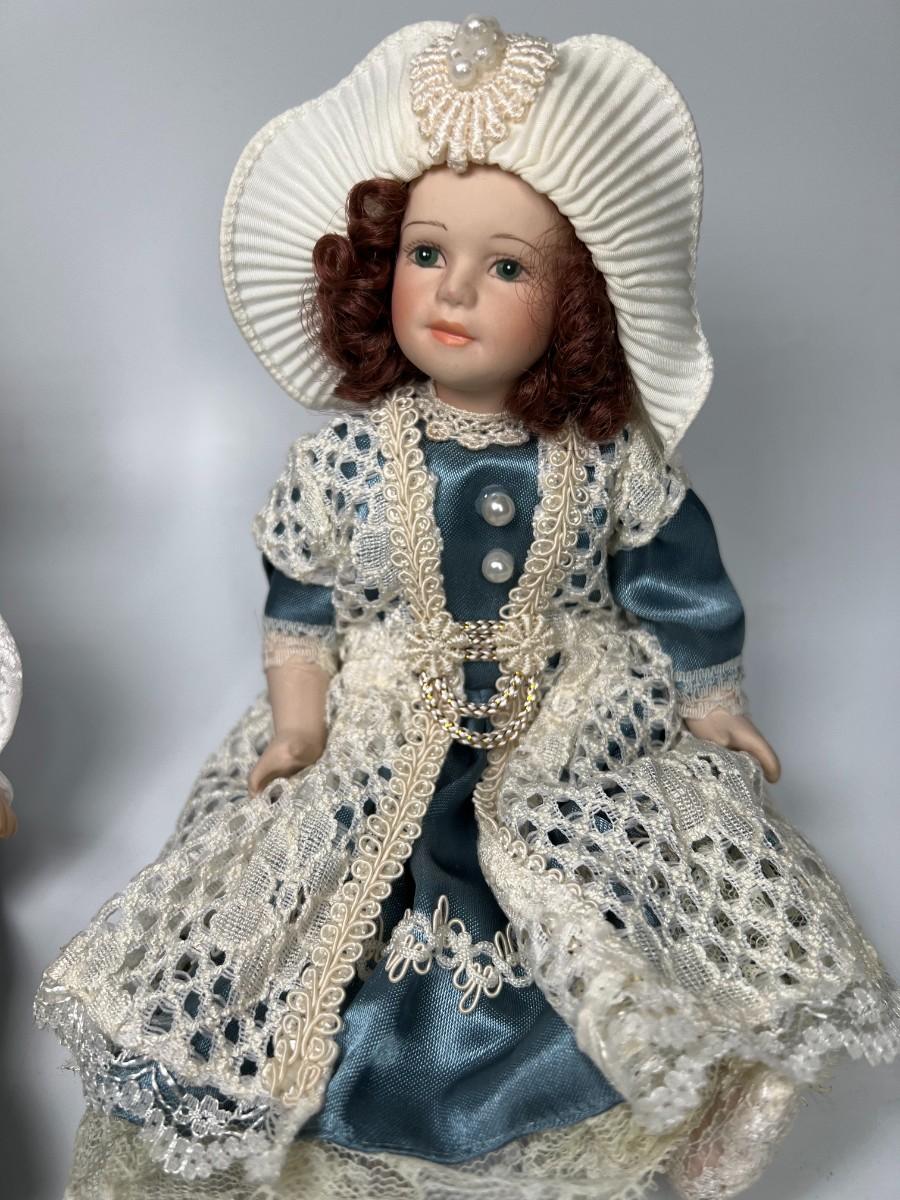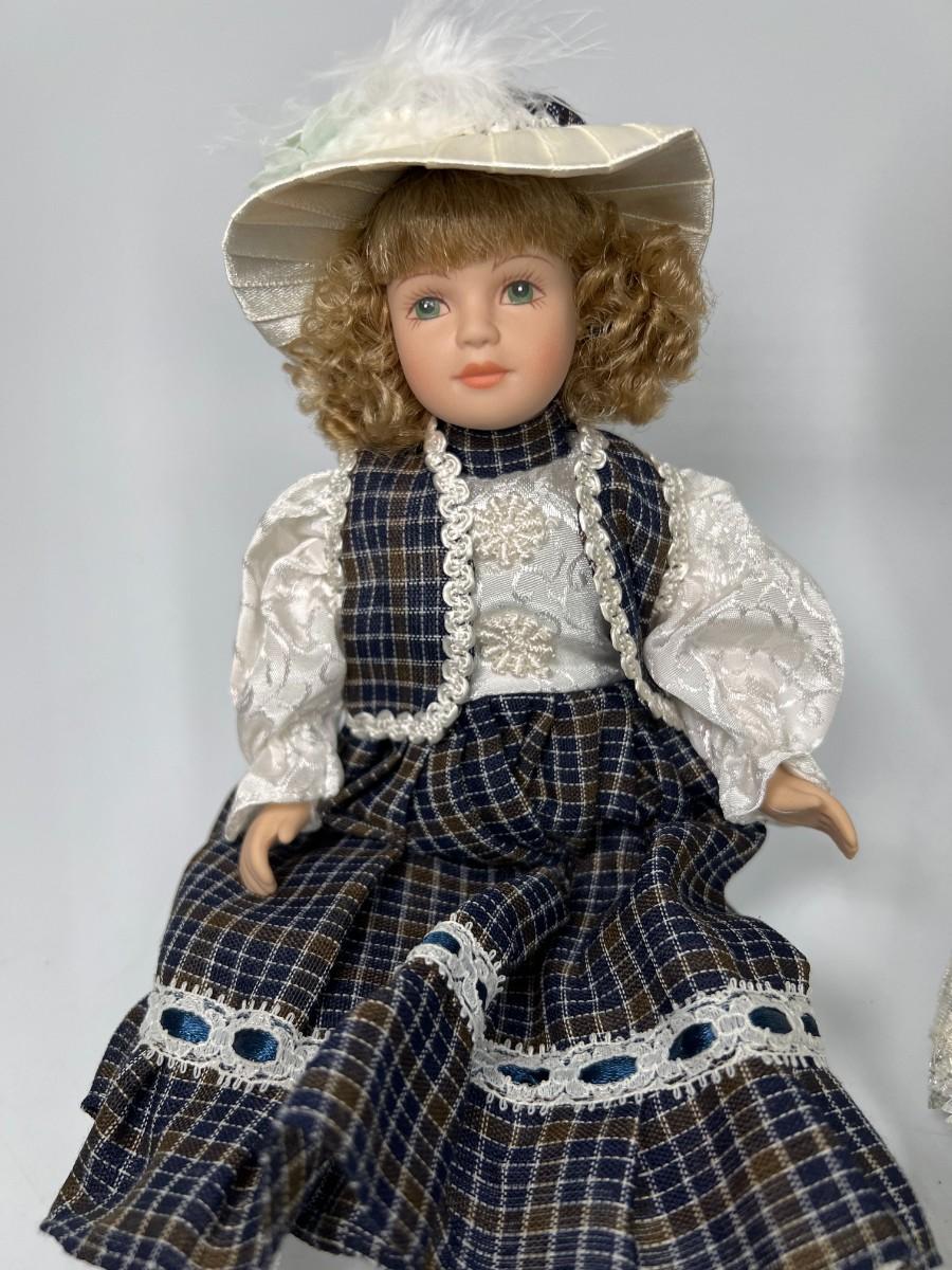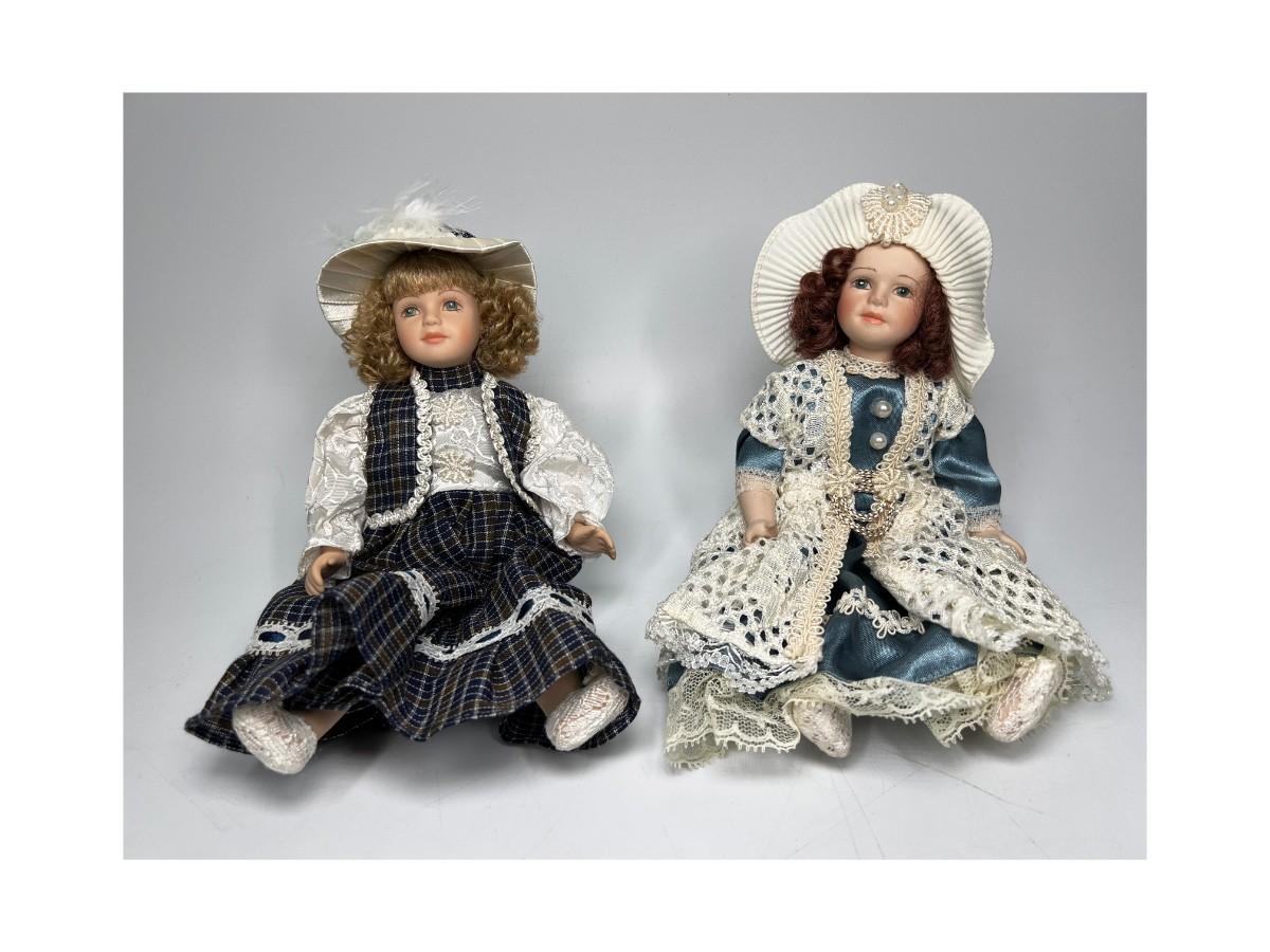 Pair of 9" Porcelain Dolls. Display nicely. Newer art dolls, not vintage.