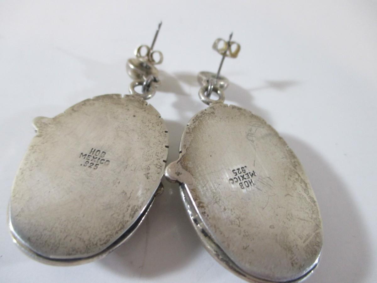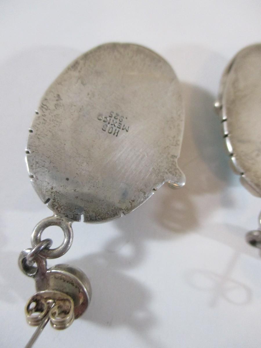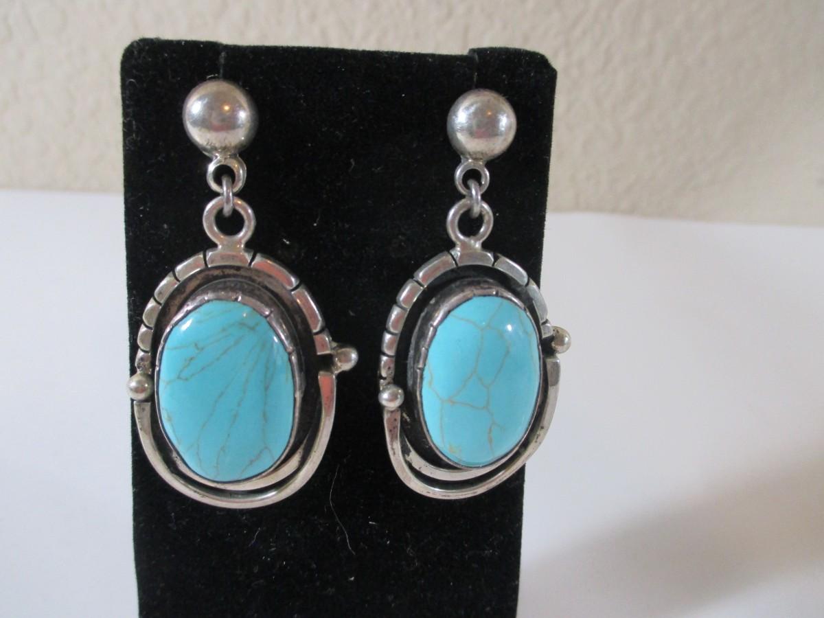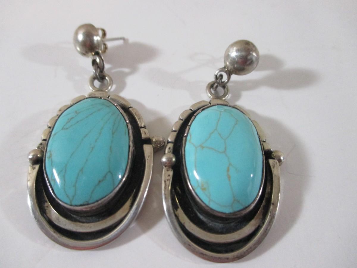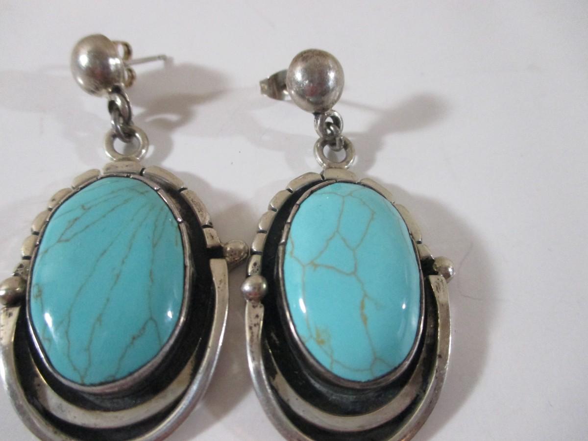 Pair of 925 Blue Turquoise Droop Dangle Aztec Earrings Marked 925 1-3"