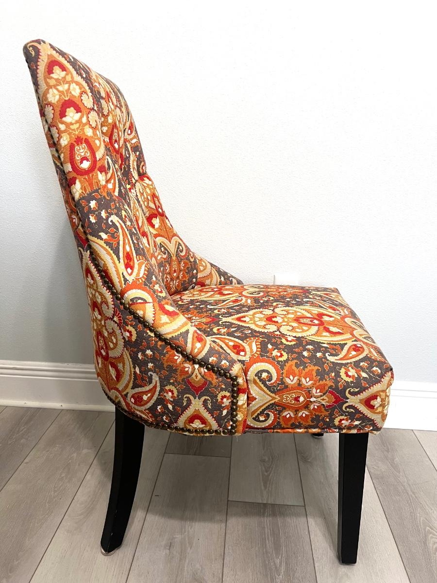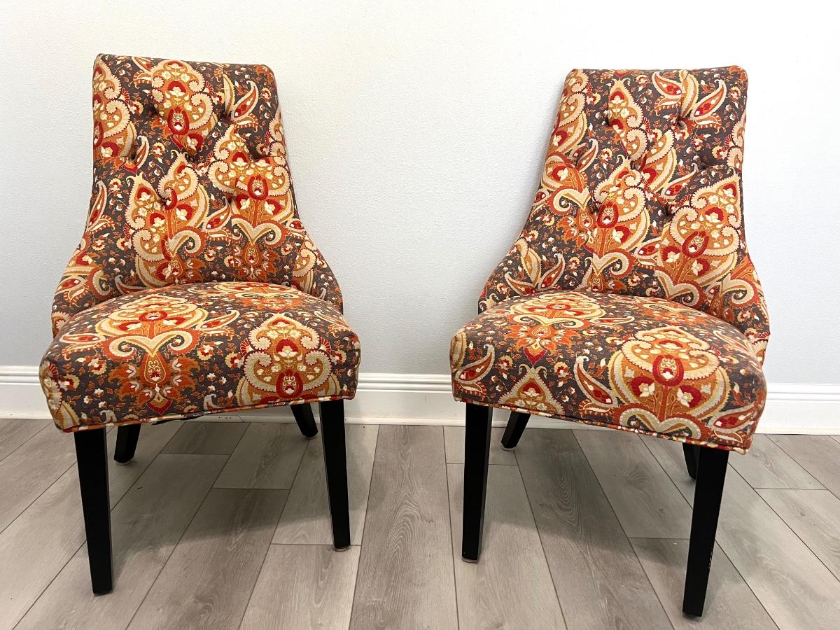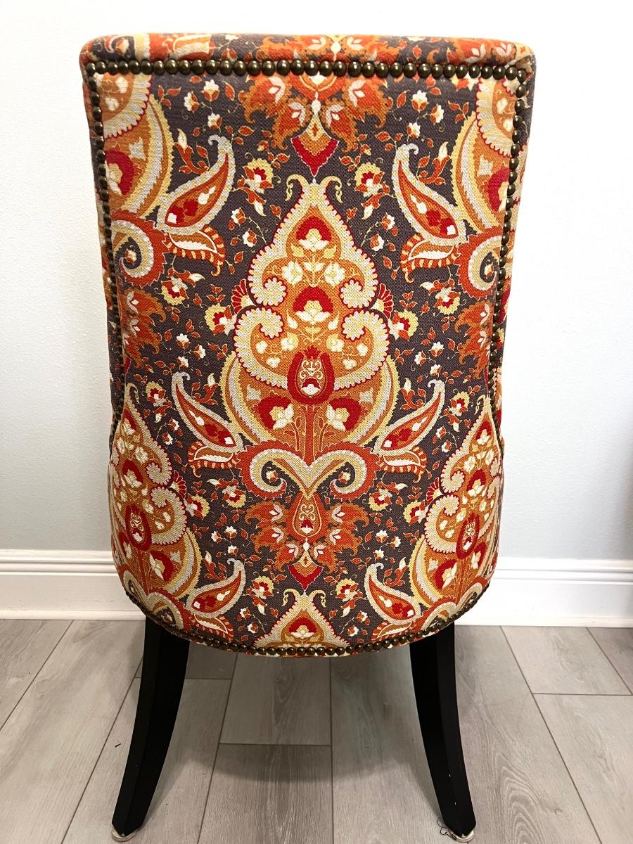 No brand found. Good condition. Chairs measure 22”W x 22”D. 18”T from floor to seat, 37”T from floor to top of back.