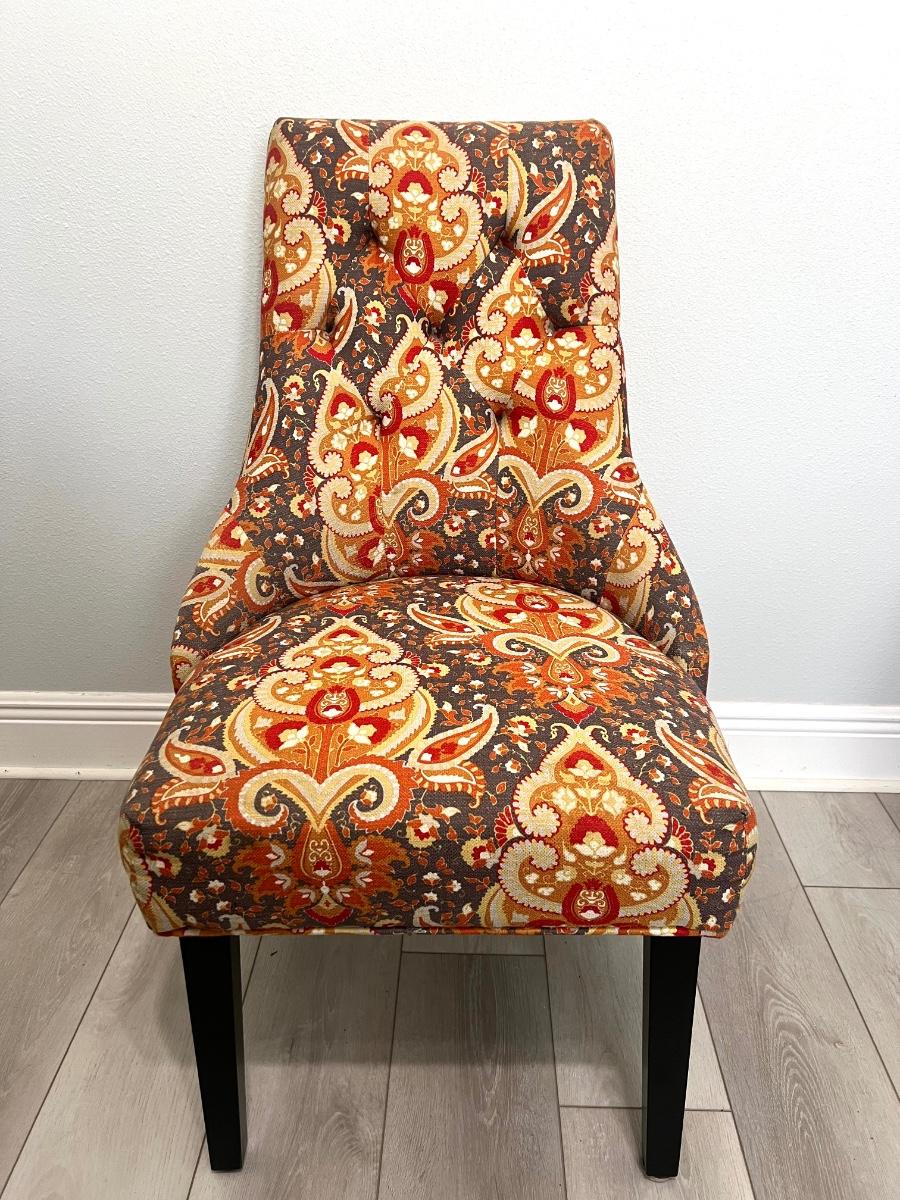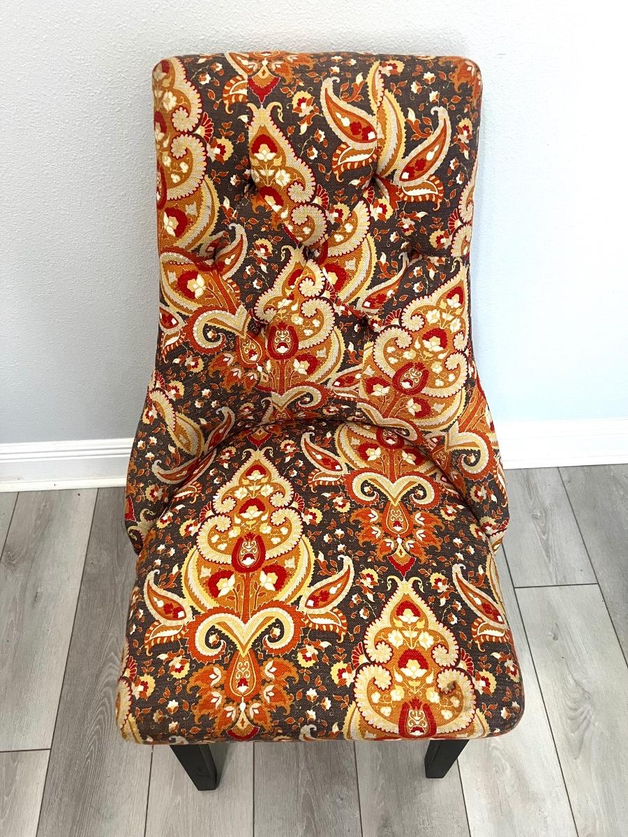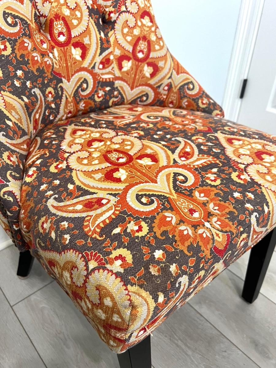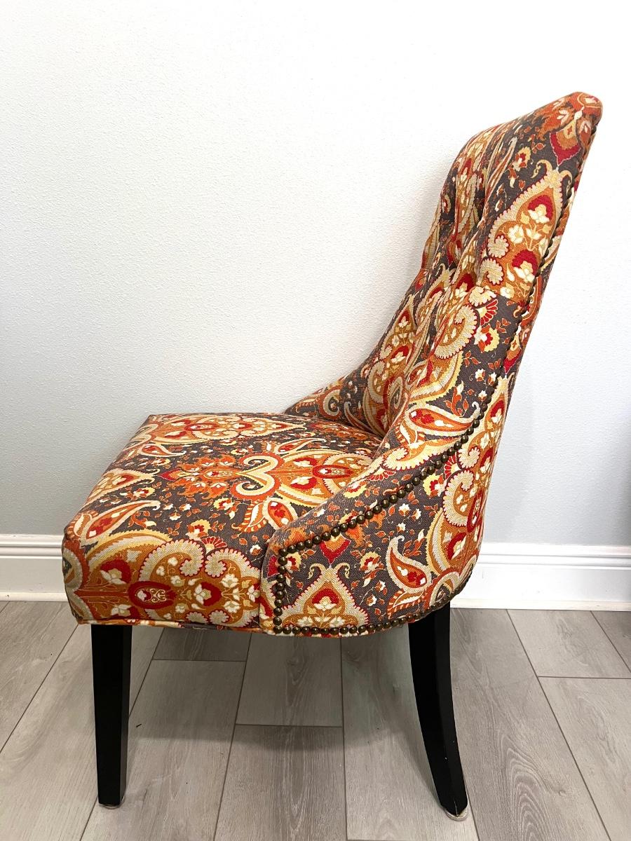No brand found. Good condition. Chairs measure 22”W x 22”D. 18”T from floor to seat, 37”T from floor to top of back.