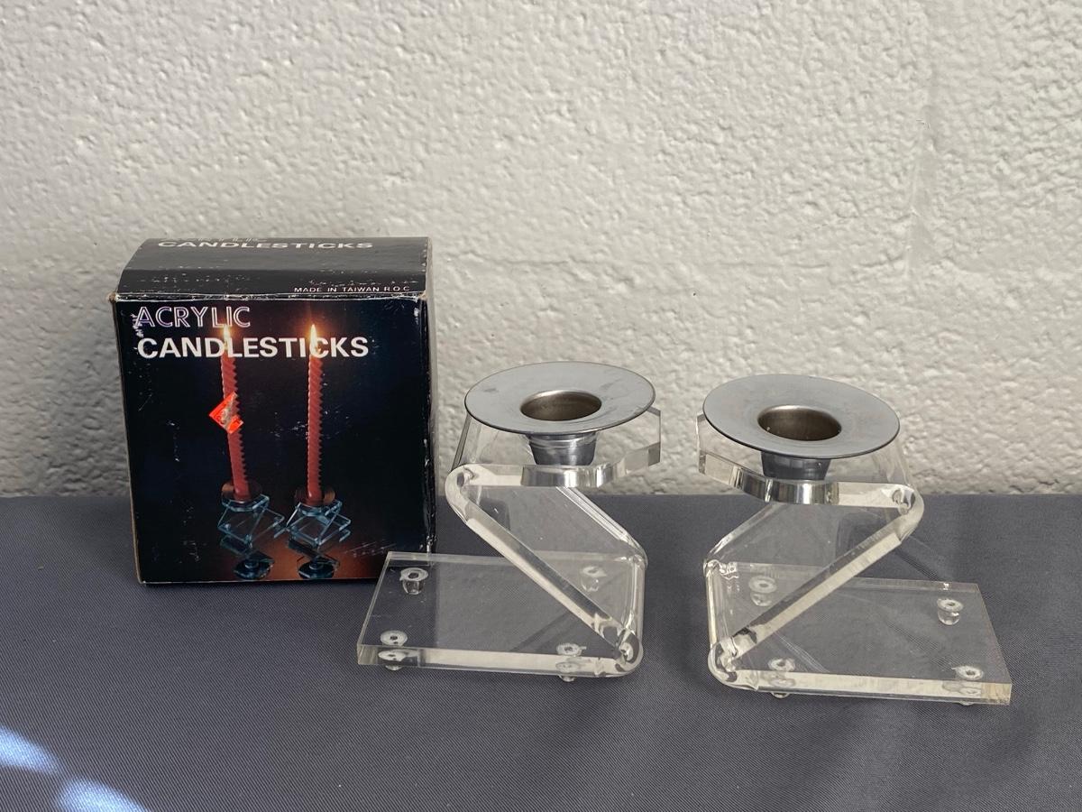Pair of Acrylic Candlesticks, 4", in new condition with box - $25 (BROH40)