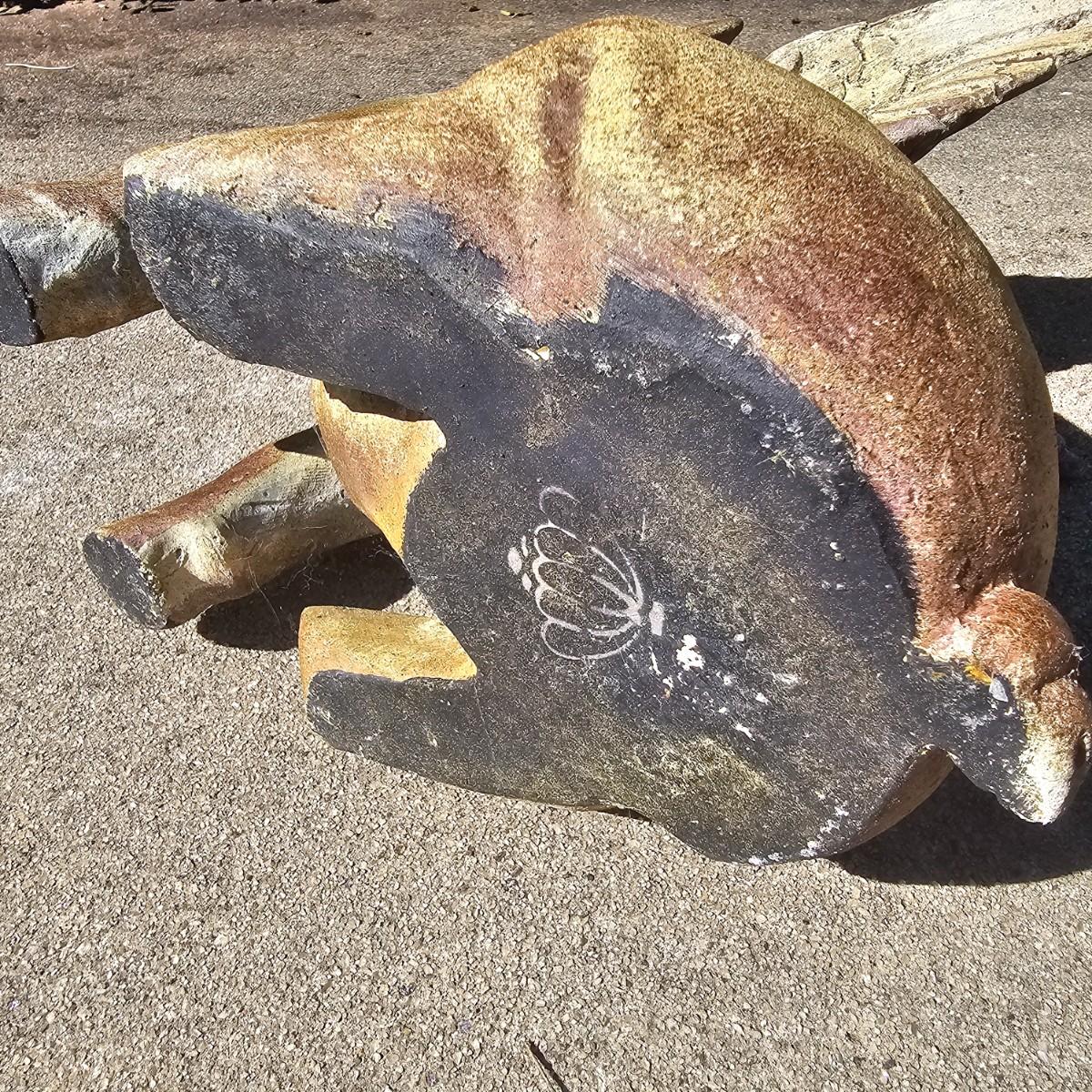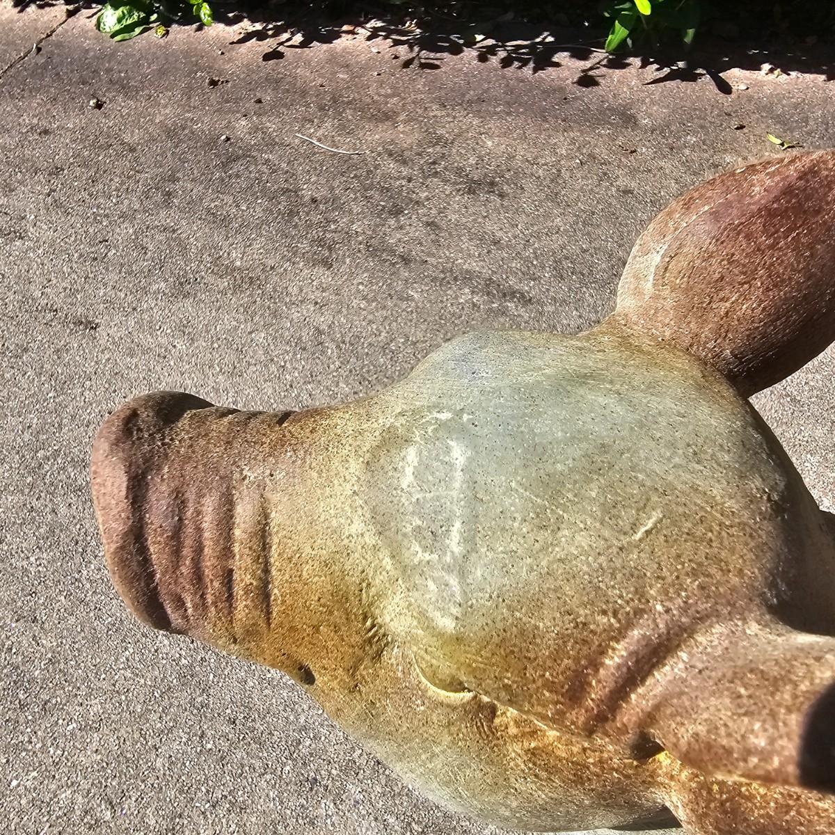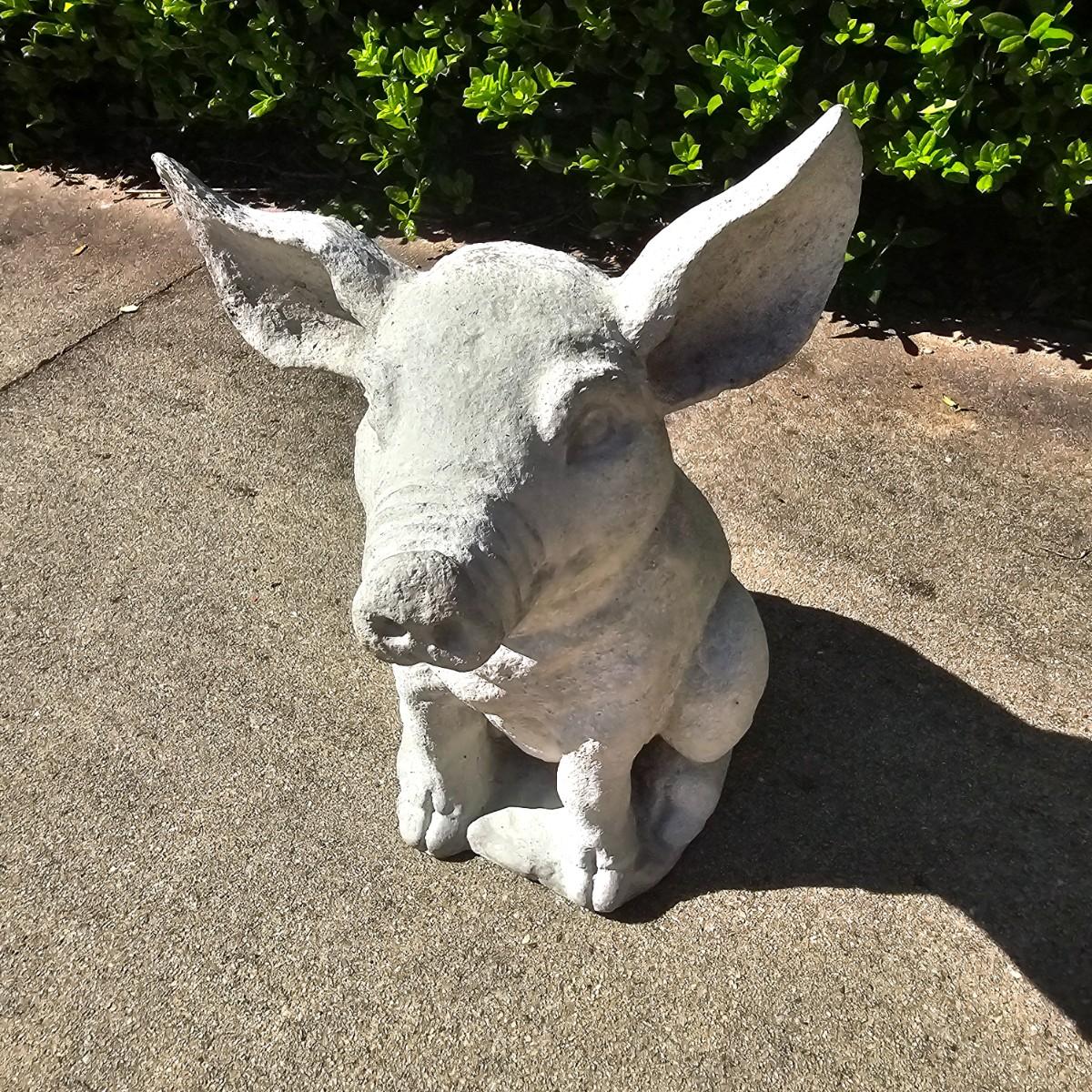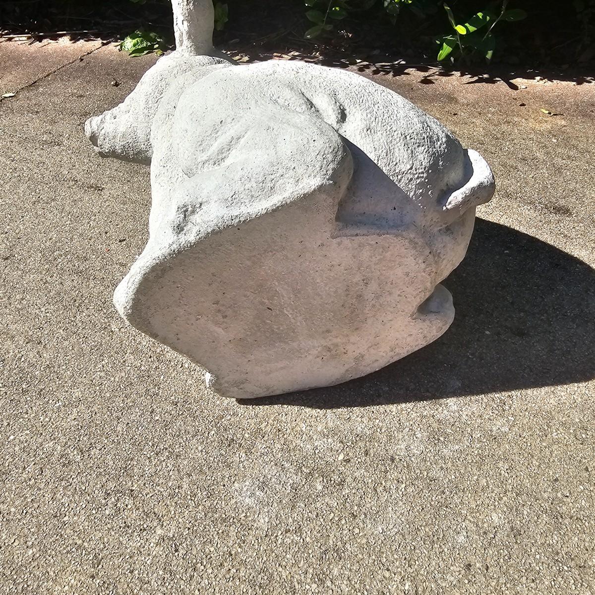 Two whimsical cute pigs to decorate your yard or home. Grey pig is concrete, measures 8.5" x 12" x 13.5"H. Pig with wings is resin or fiberglass, measures 8.5" x 12" x 13.5"H. Some wear on both, see photos for details. Local pickup only.