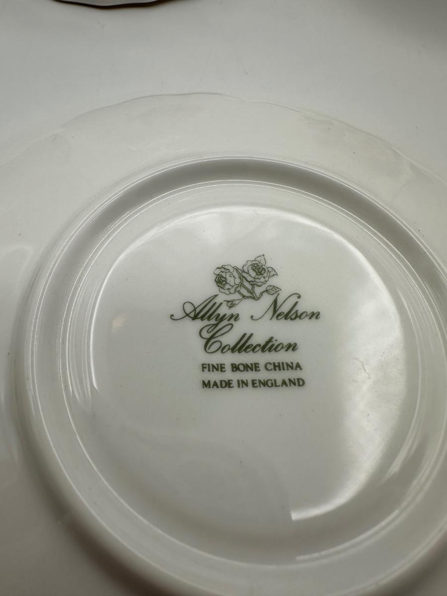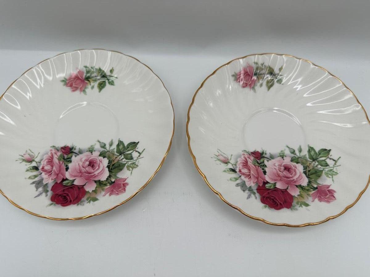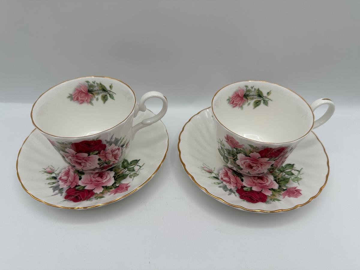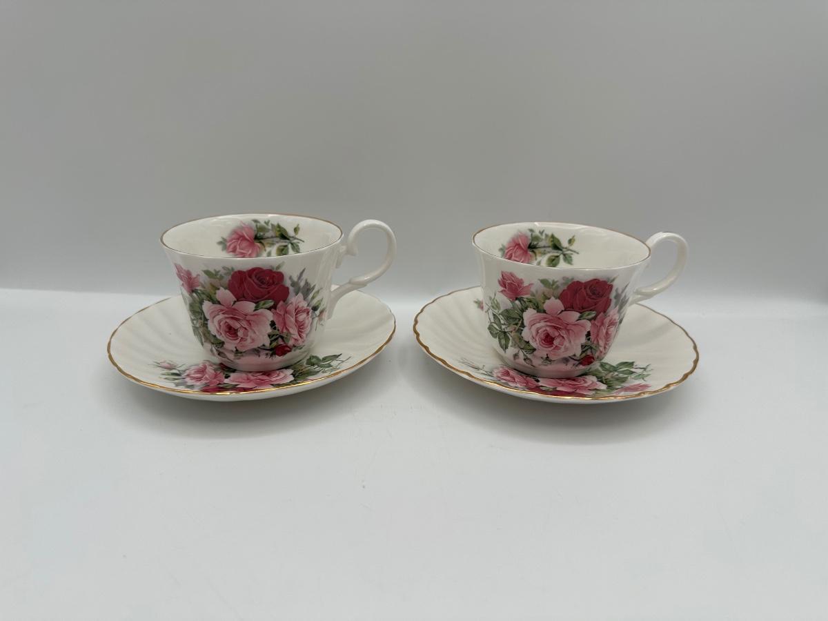 Pair of Allyn Nelson Fine Bone China Rose Teacup & Saucer Sets – Made in England