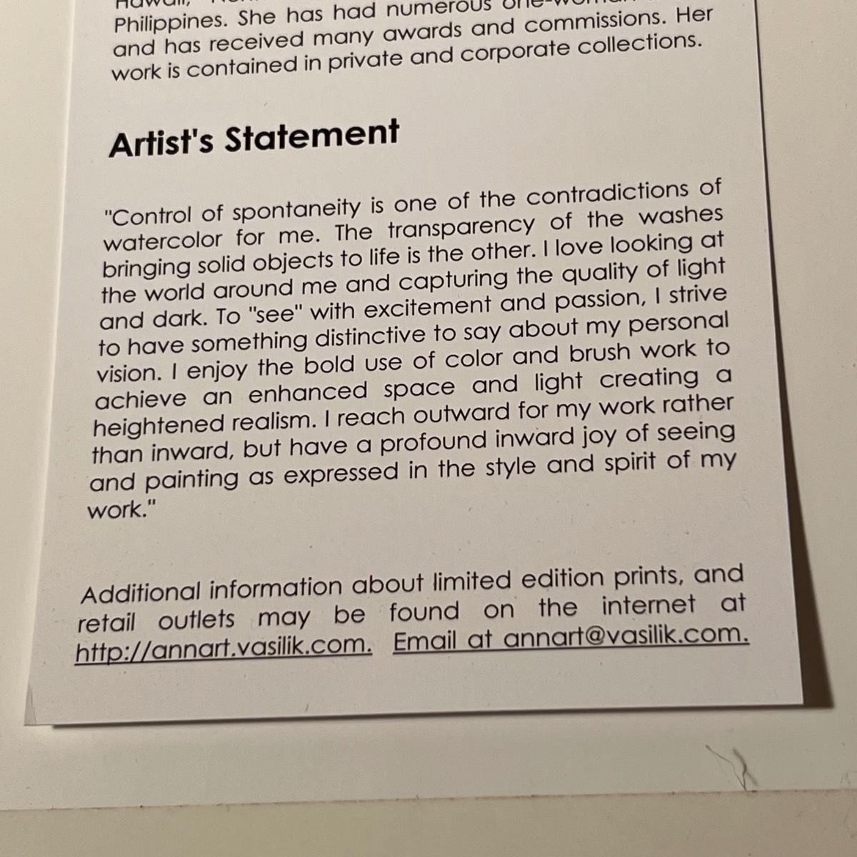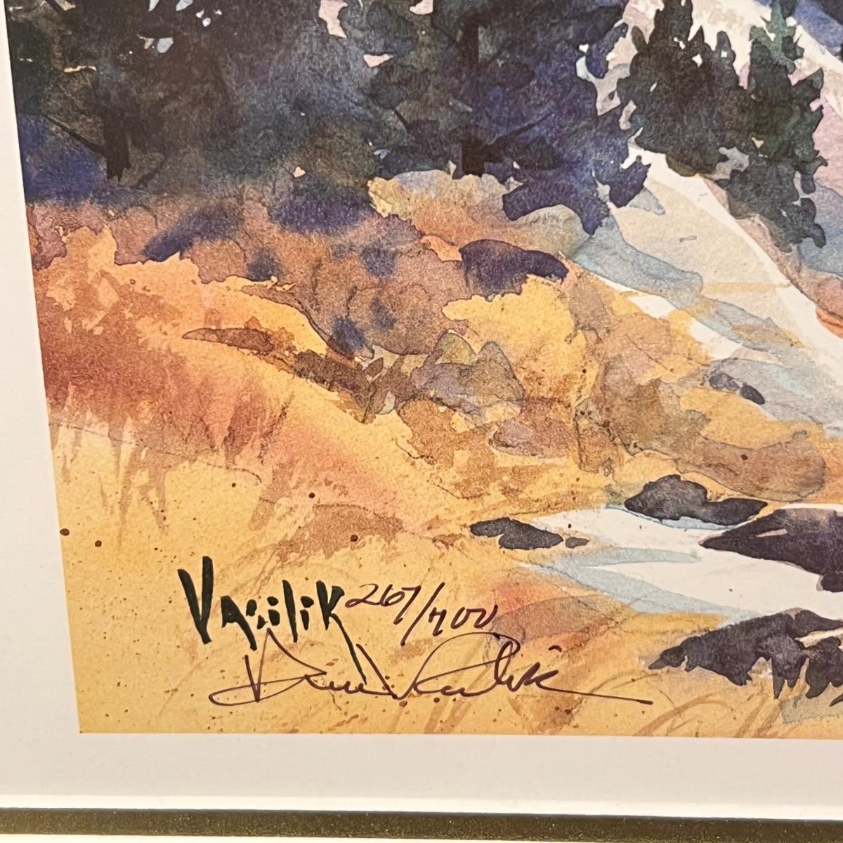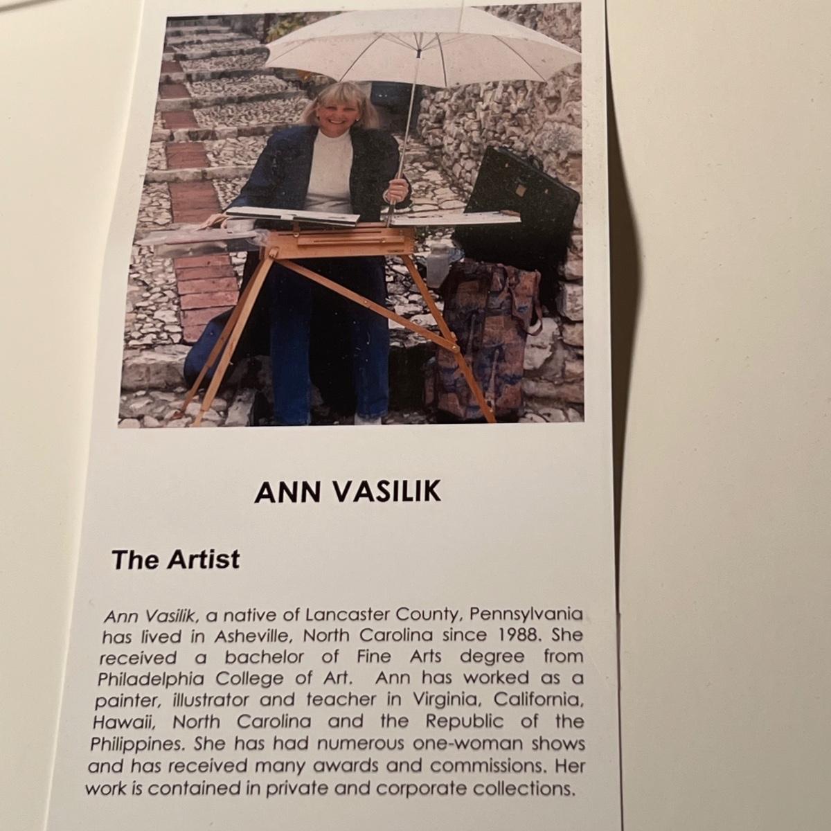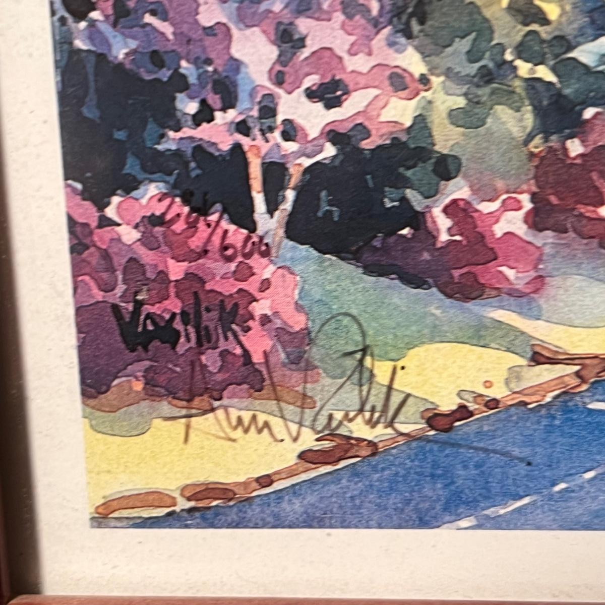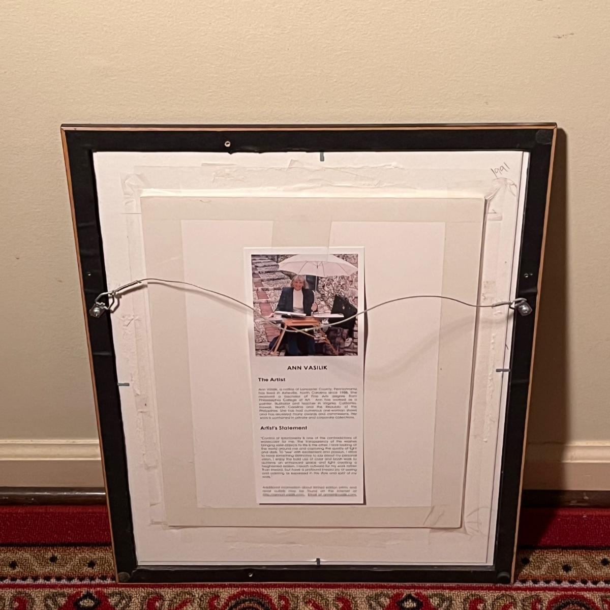 Two framed prints by renowned local artist Ann Vasilik. Both are under glass and housed in wood like frames. Larger frame measures 16” x 20”H.