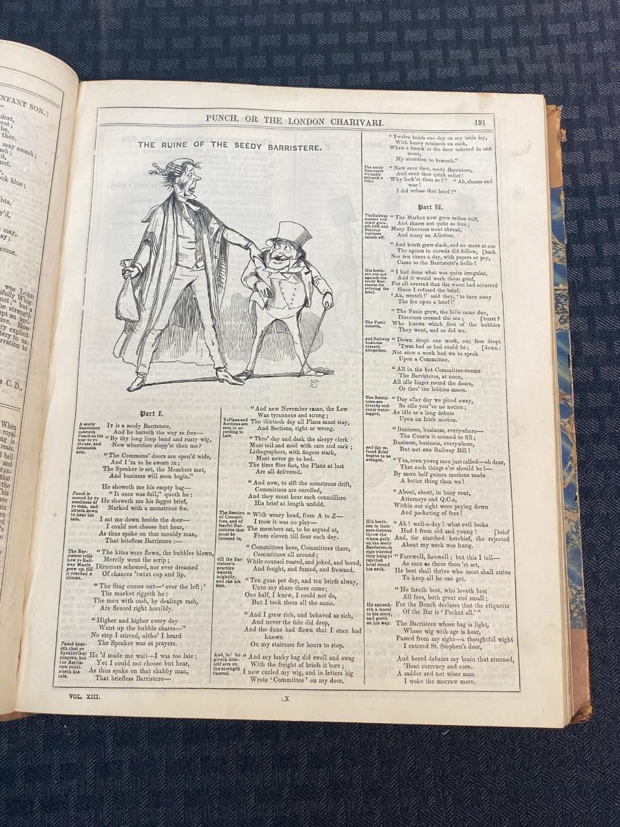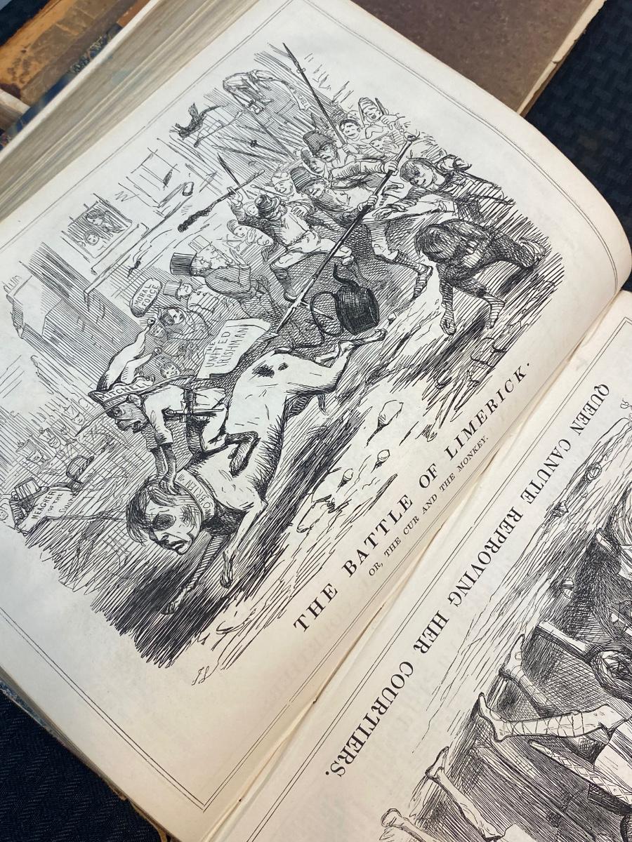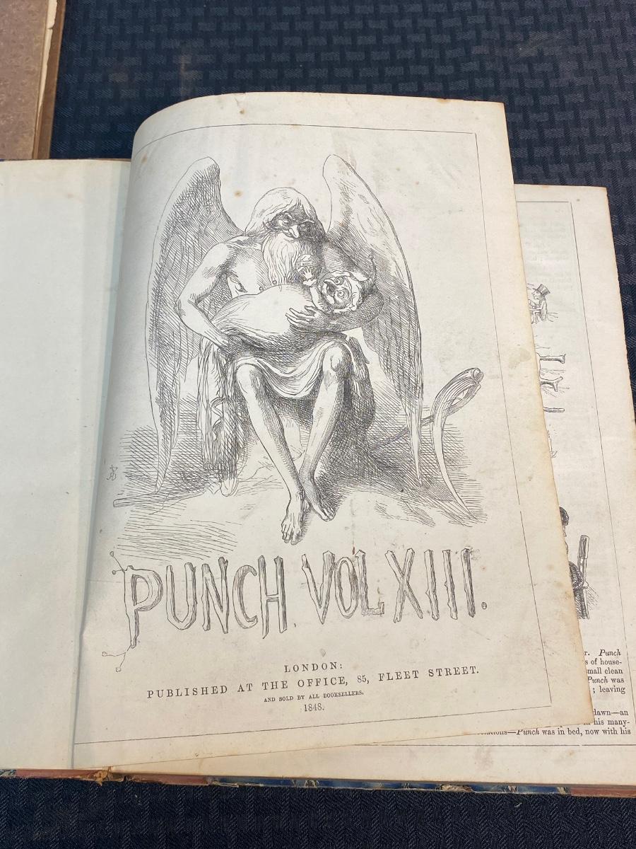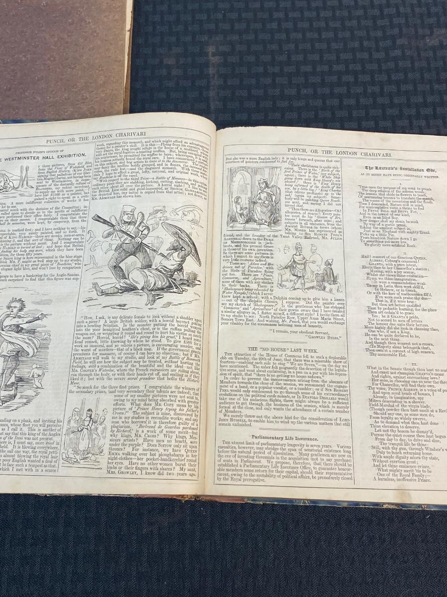 Pair of Antique 19th Century Collectible Satire New York & London Books Diognes The Lantern Vol. 1 & Punch Vol. XIII