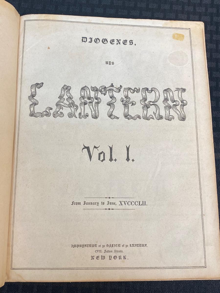 Pair of Antique 19th Century Collectible Satire New York & London Books Diognes The Lantern Vol. 1 & Punch Vol. XIII, the cover of The Lantern is torn off, but there is no other significant damage to the pages and is in good condition for its age. Check pictures for more details and for sizing.