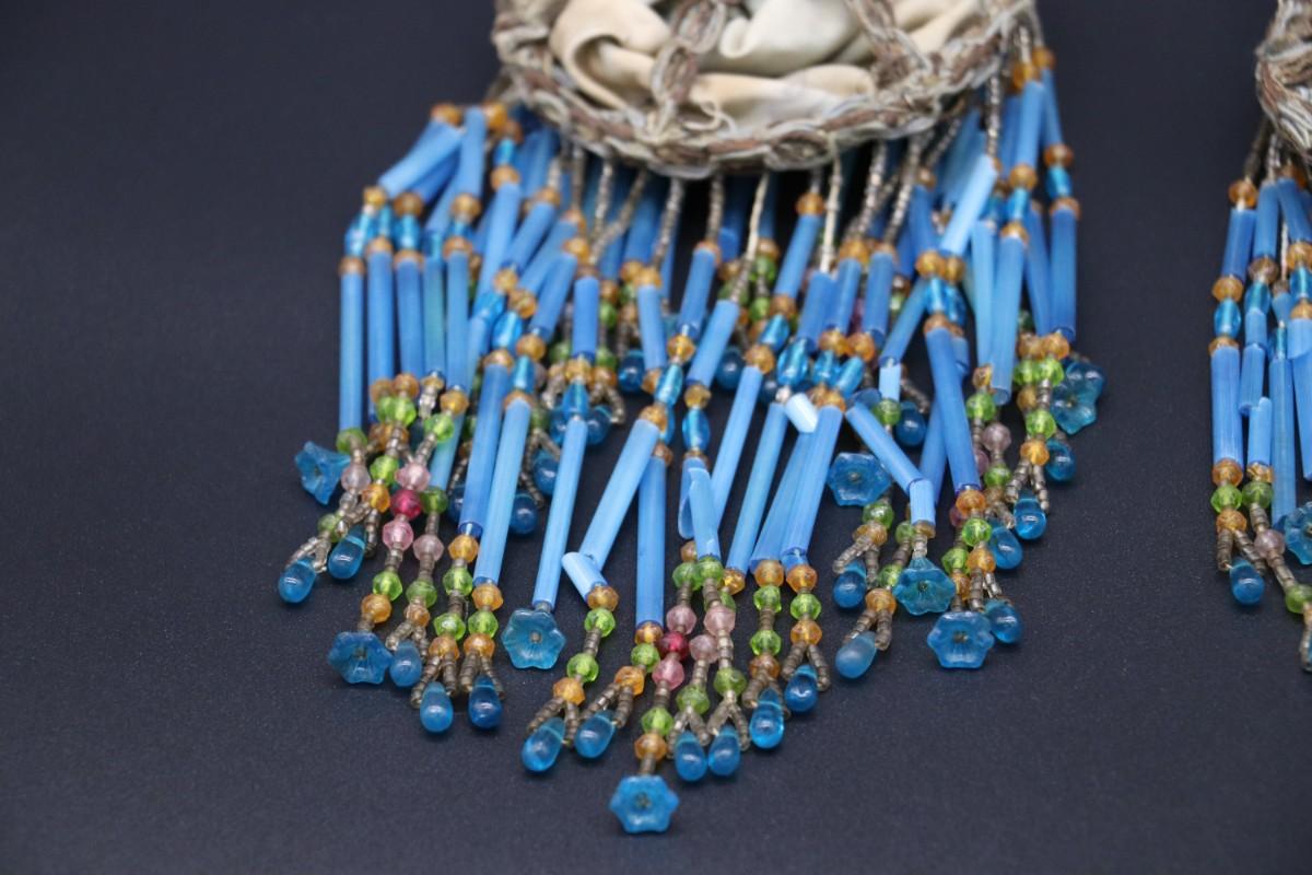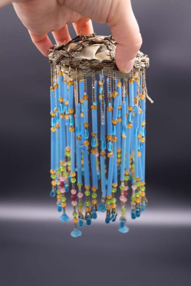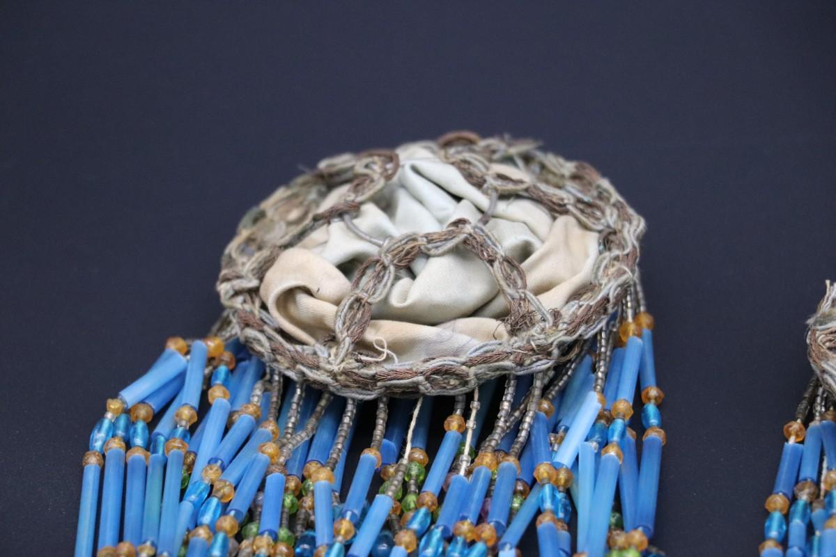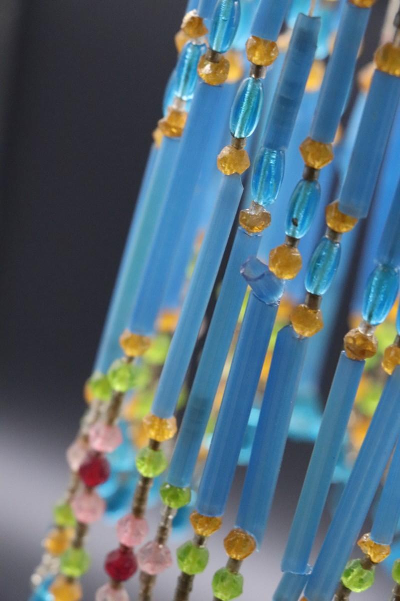 Pair of Antique Art Deco Blue Bead Fringe Bulb Cover Lamp Shades