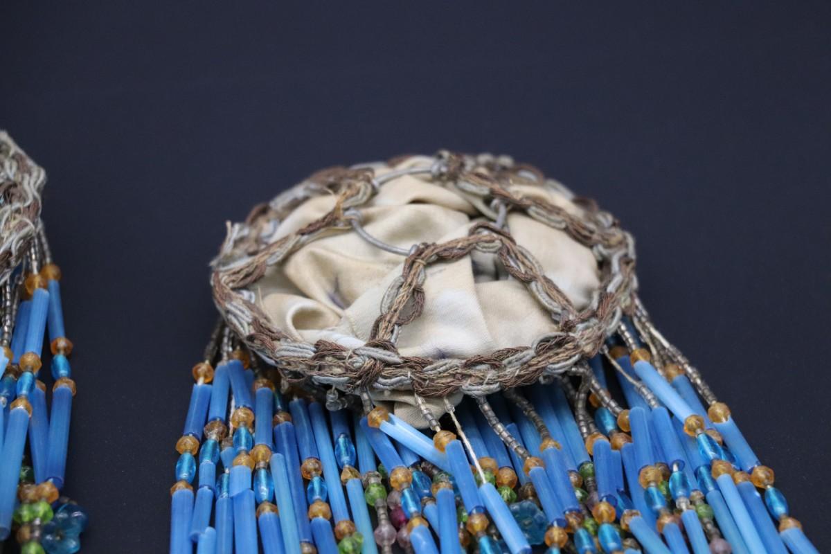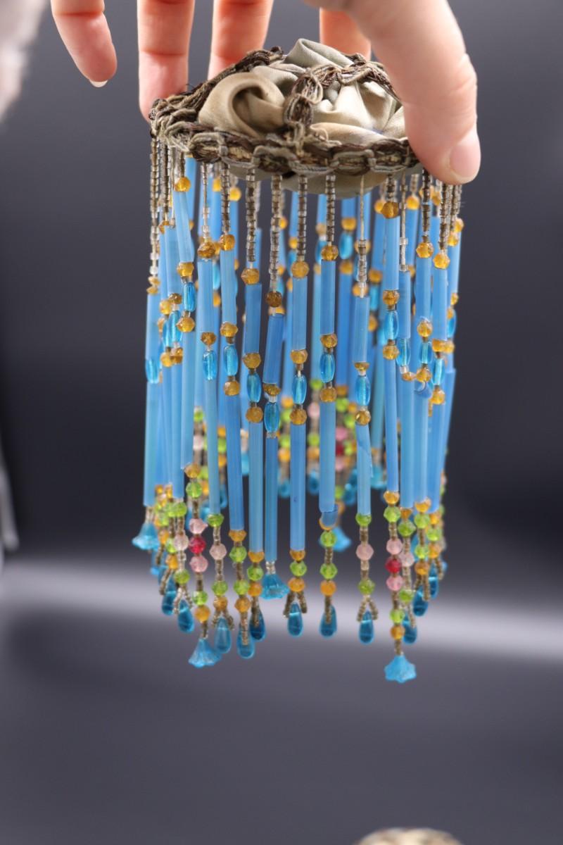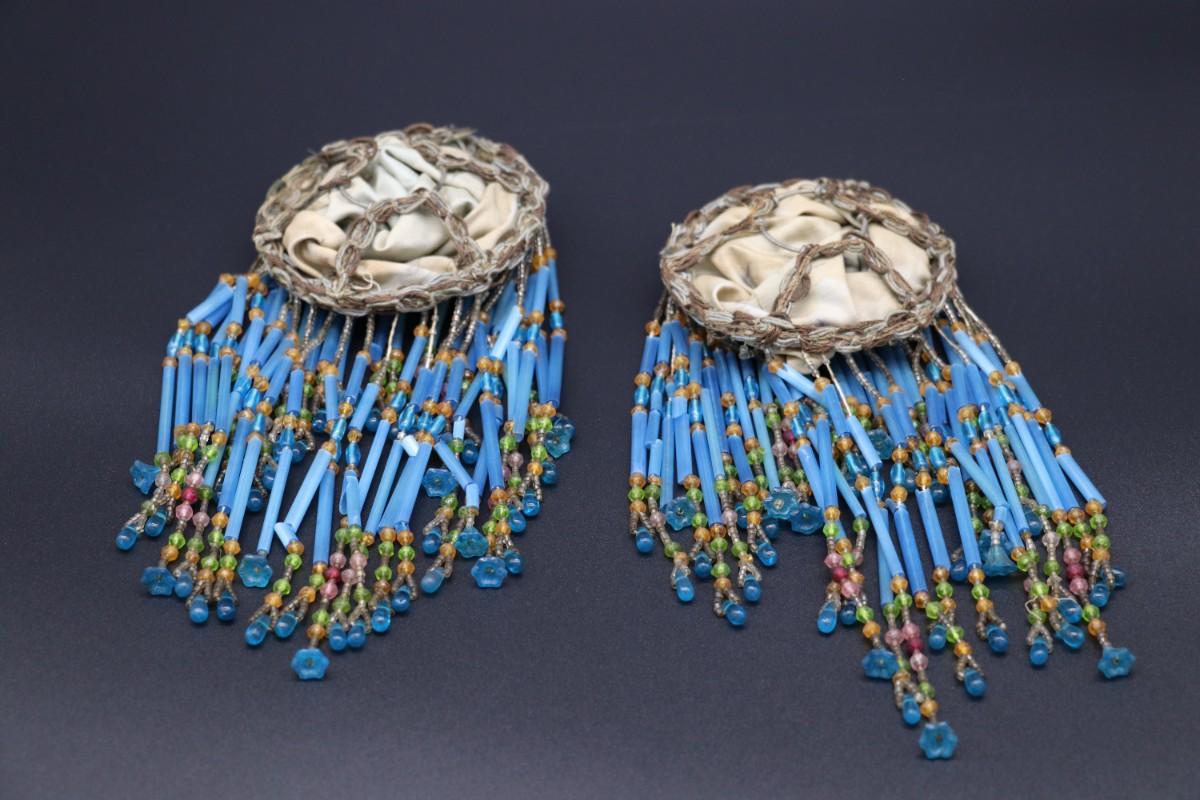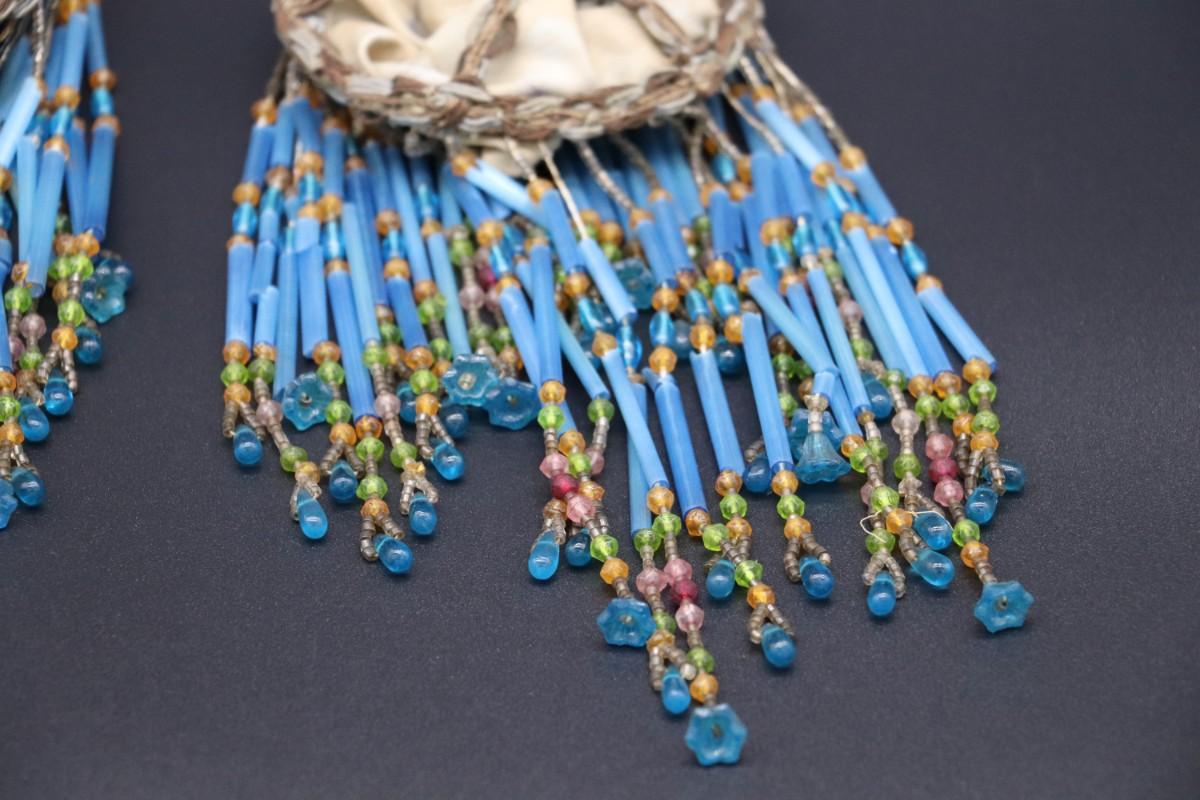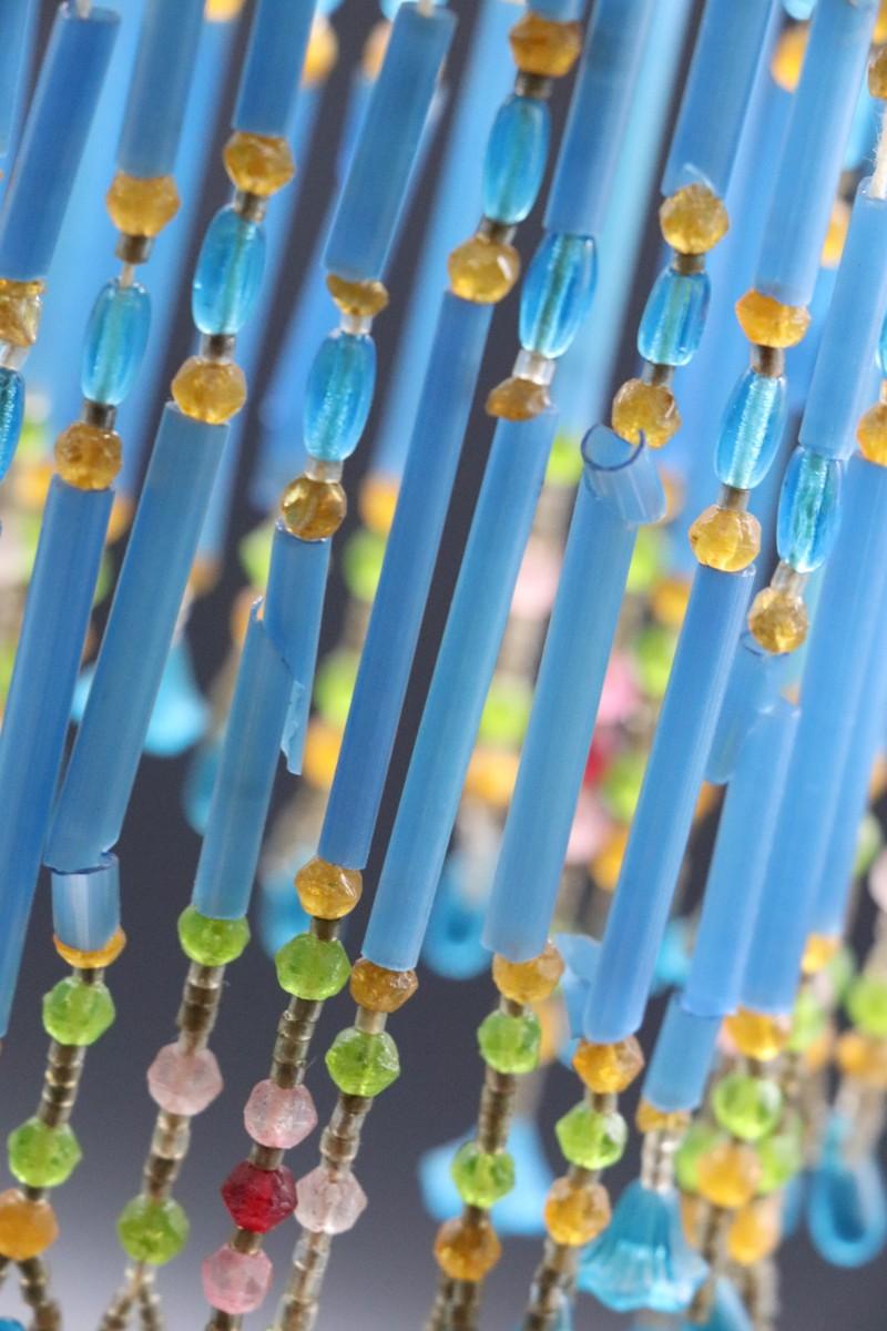 Pair of Antique Art Deco Blue Bead Fringe Bulb Cover Lamp Shades