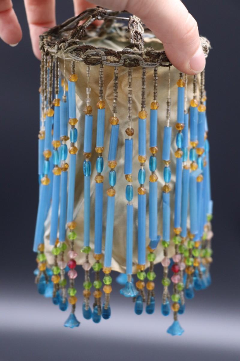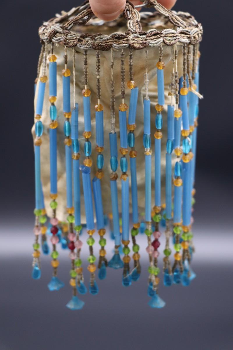 Pair of Antique Art Deco Blue Bead Fringe Bulb Cover Lamp Shades. From the estate of an antique store owner and lamp enthusiast. Condition as shown.