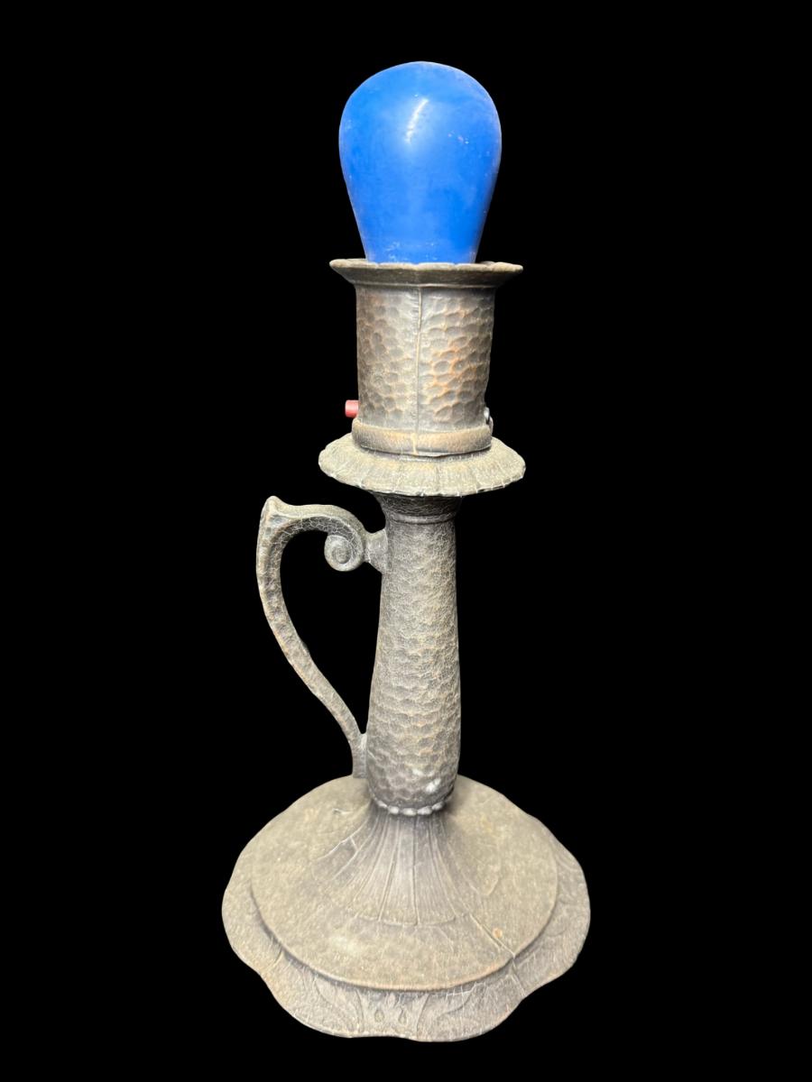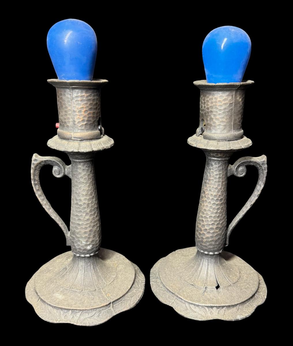 Pair of Antique Arts and Crafts Converted Metal Candlestick Lamps