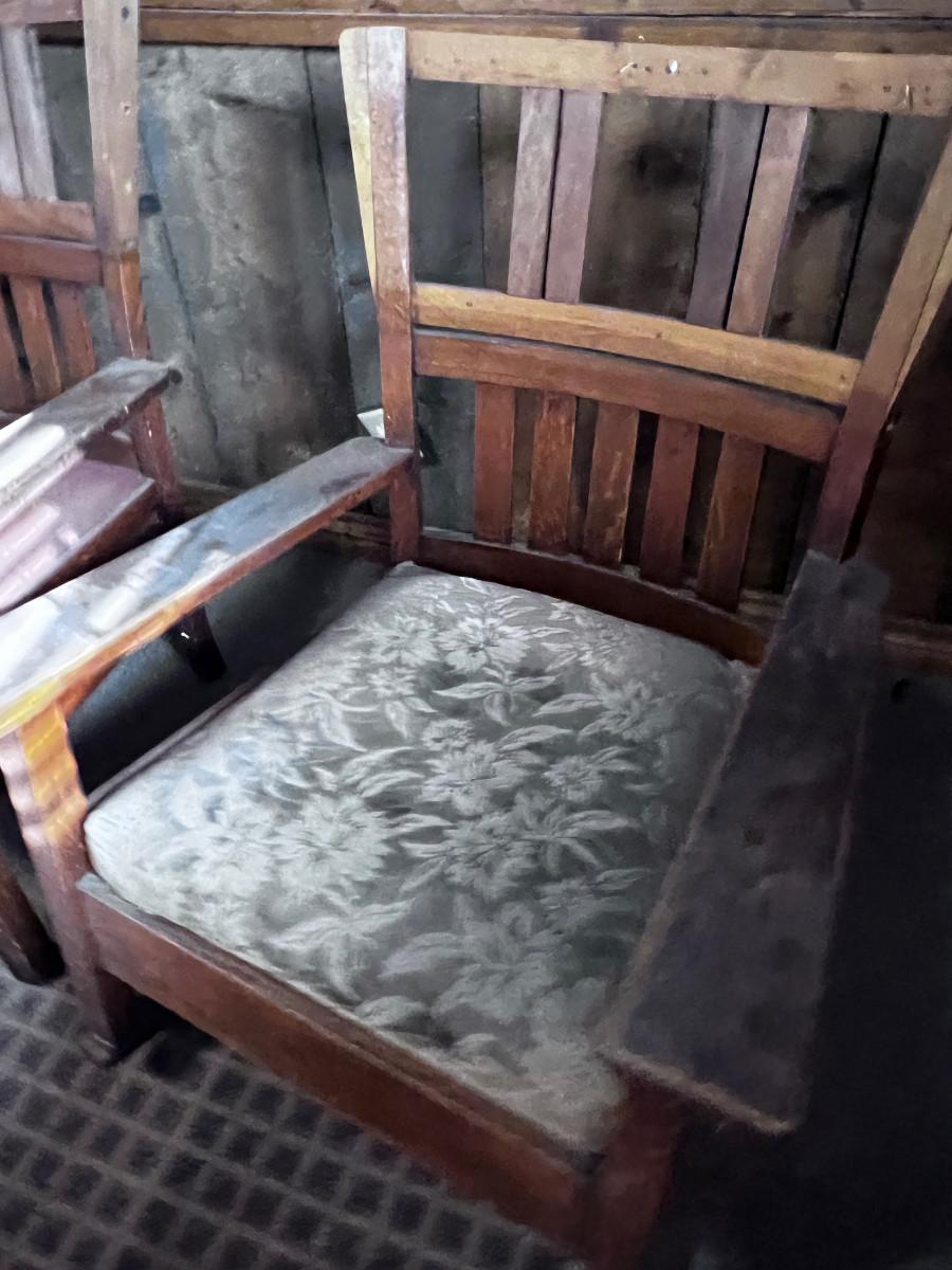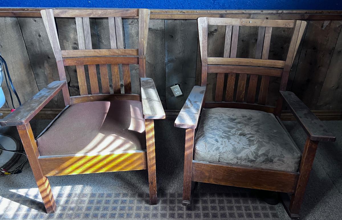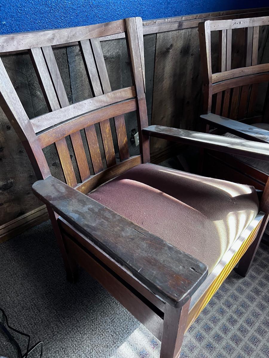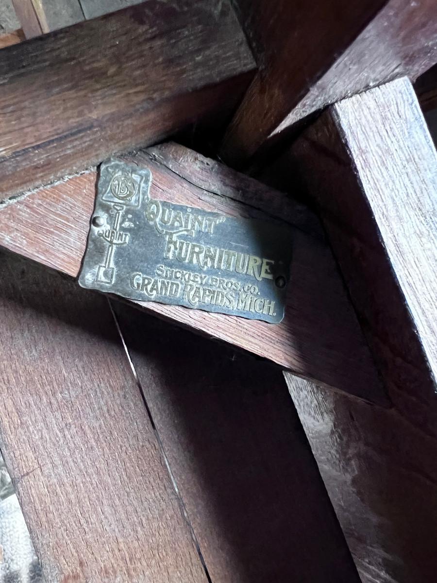 One rocker one arm chair made by the Quant Furniture Co. Grand Rapids Michigan. Need work, should have upholstered head rest see photos.