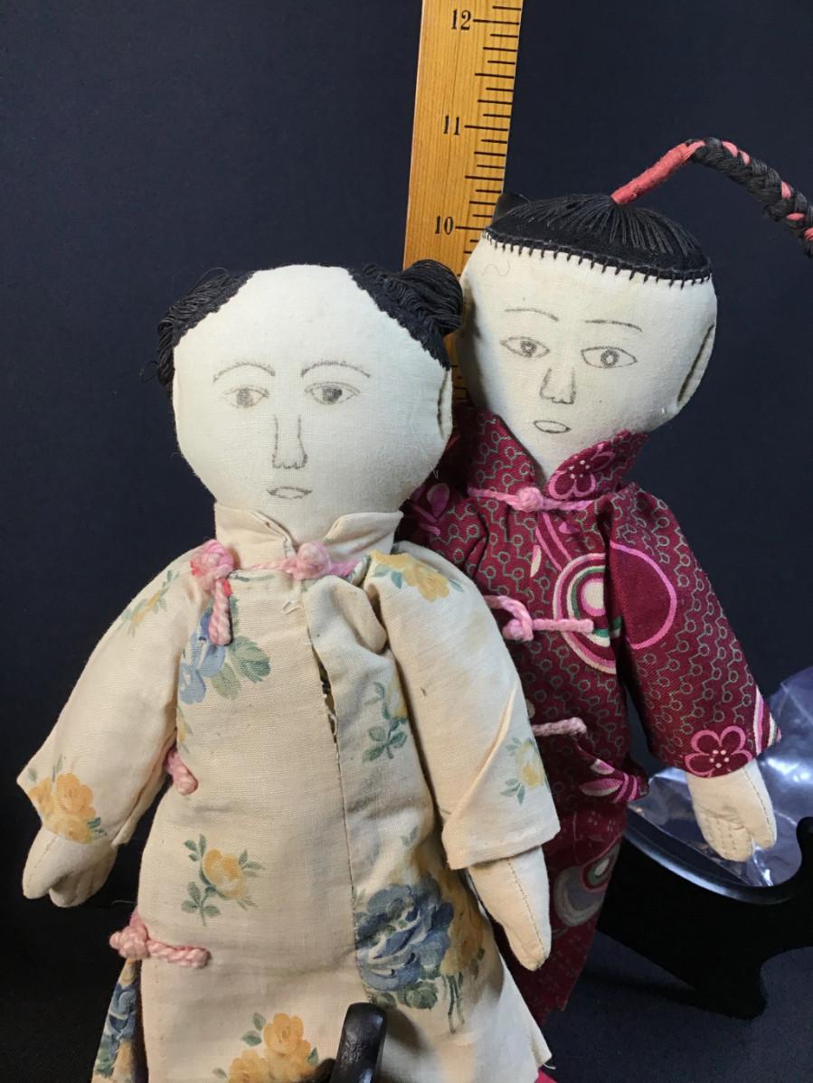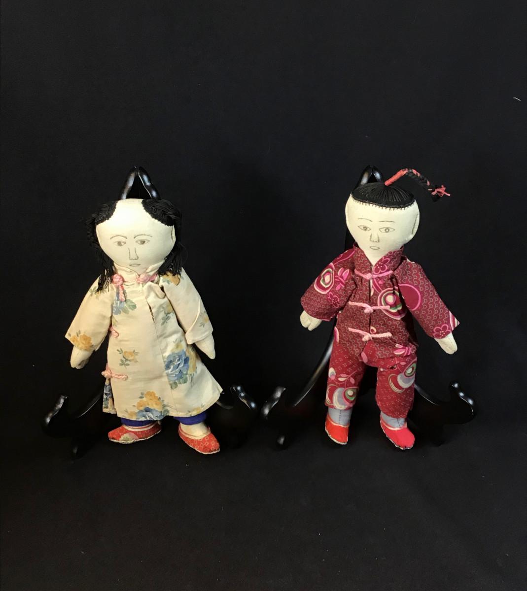 Pair of Antique Boy & Girl Chinese Cloth Dolls Hand Made