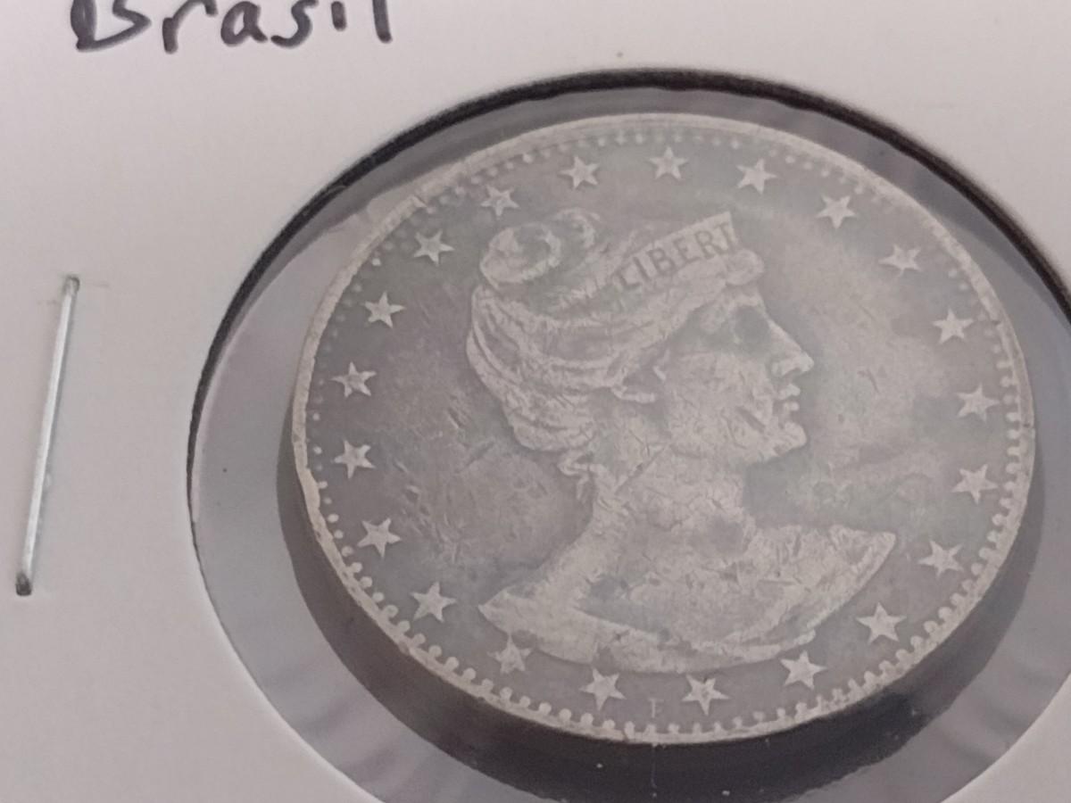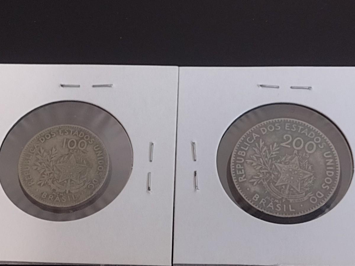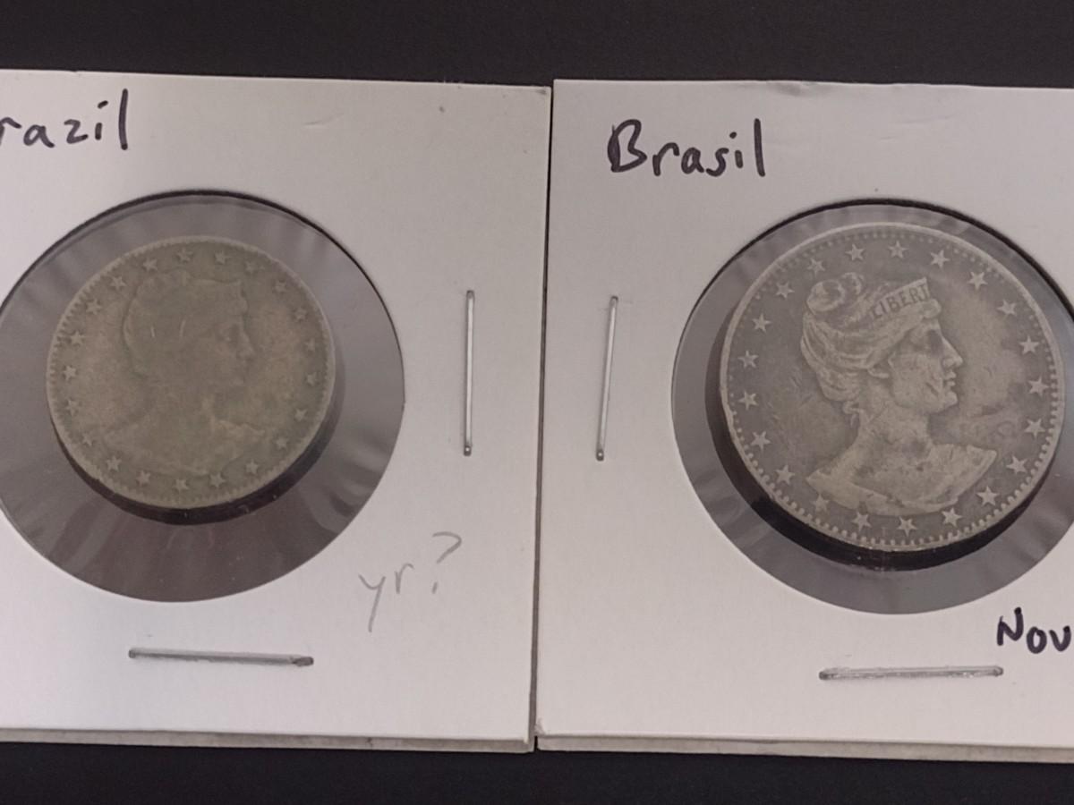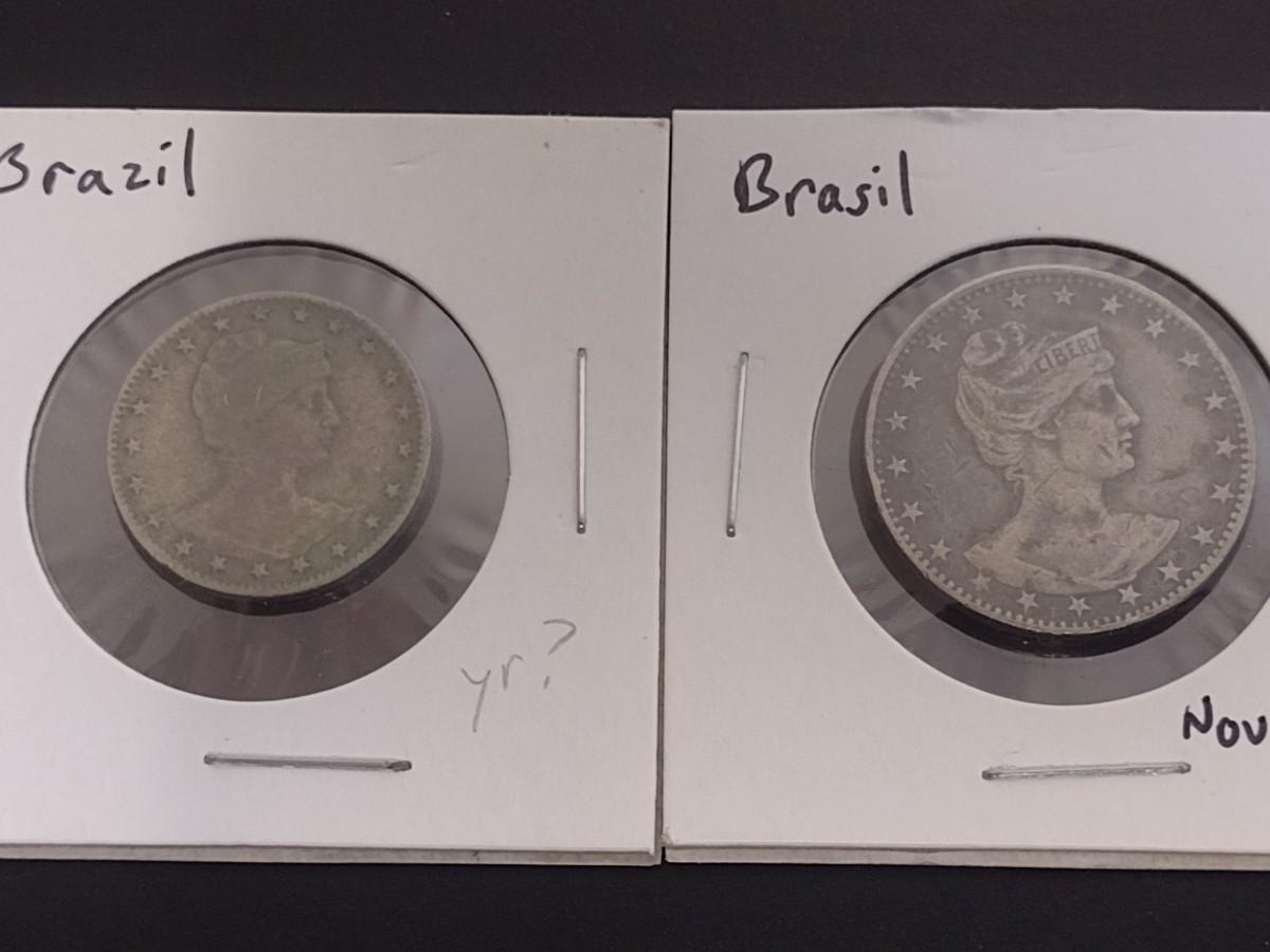 Pair of Antique Brazilian Silver Coins 100 and 200 Reis Circulated Condition (31)