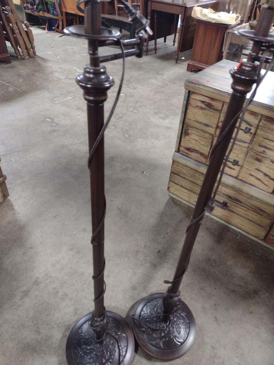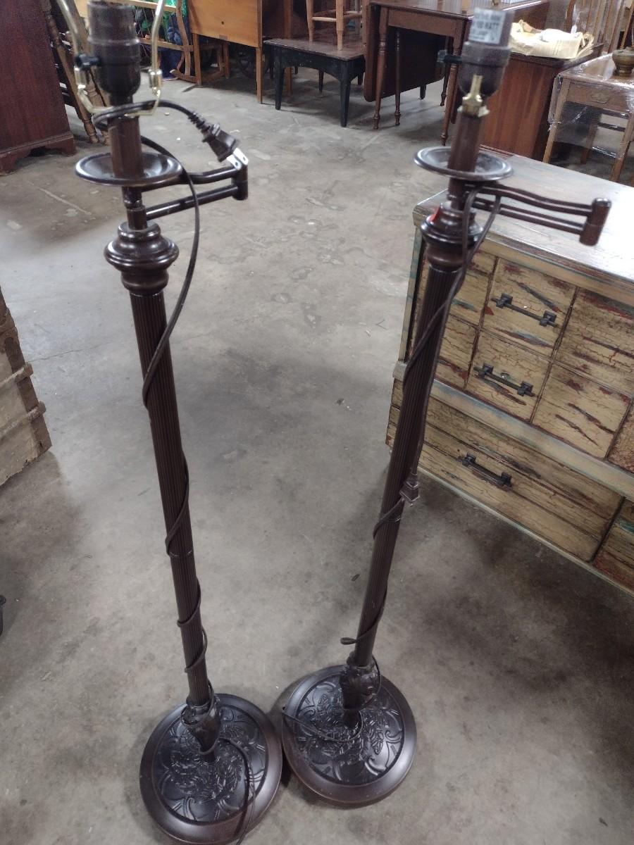 Pair of Antique Bronze Finish Floor Lamps with Swivel Necks