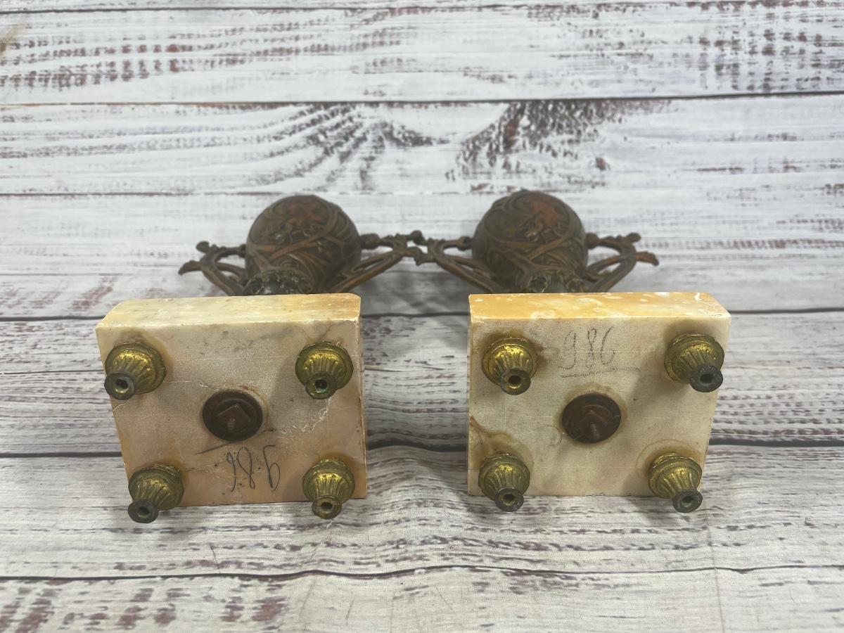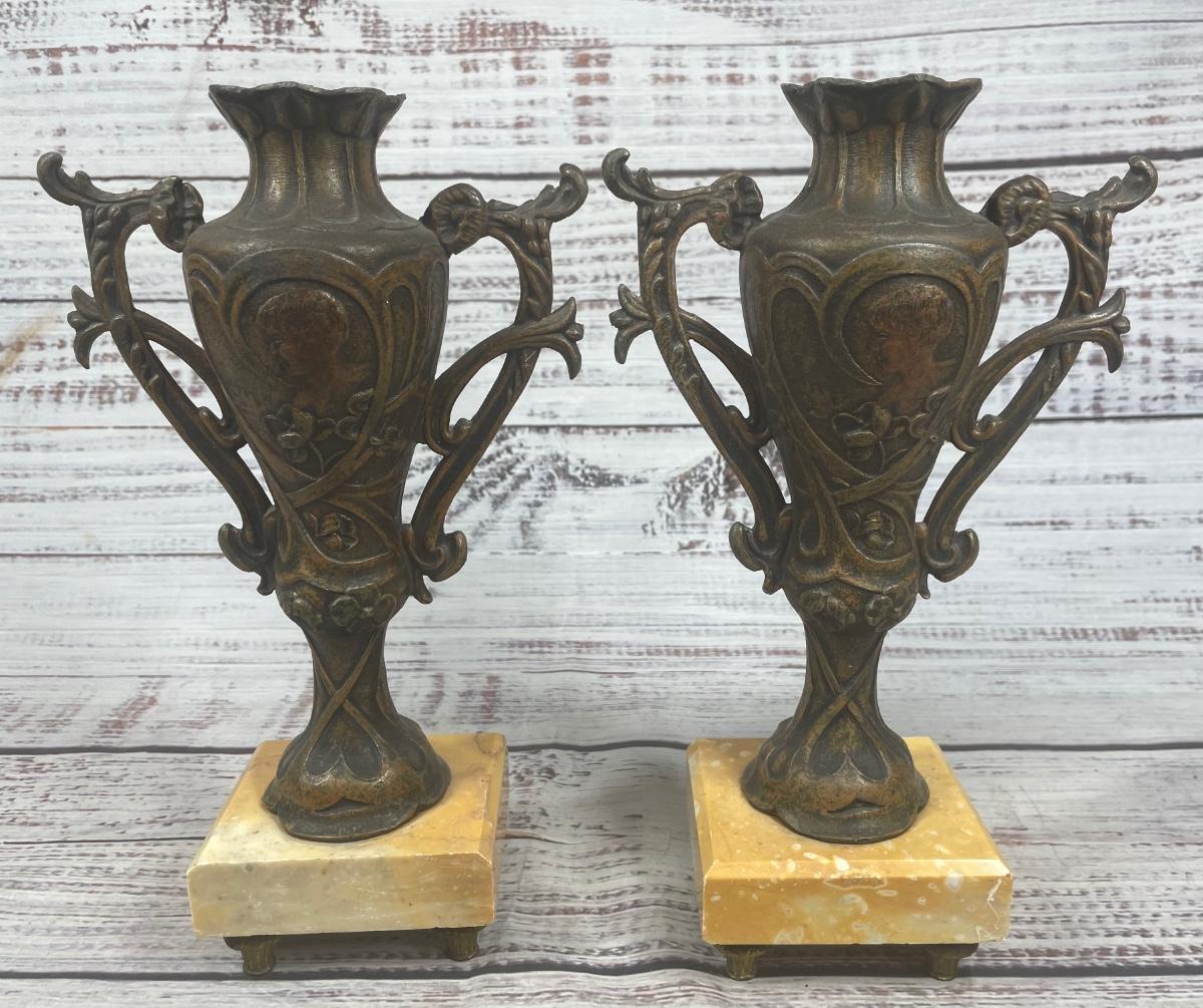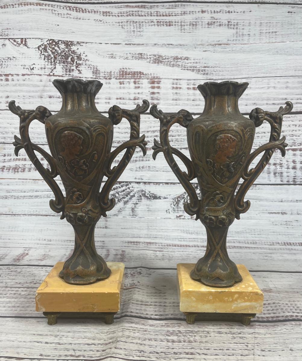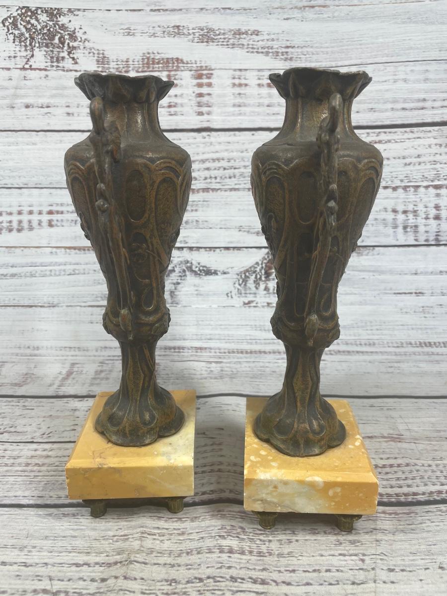Pair Of Antique Art Nouveau Painted Bronze Brass Flower Vases