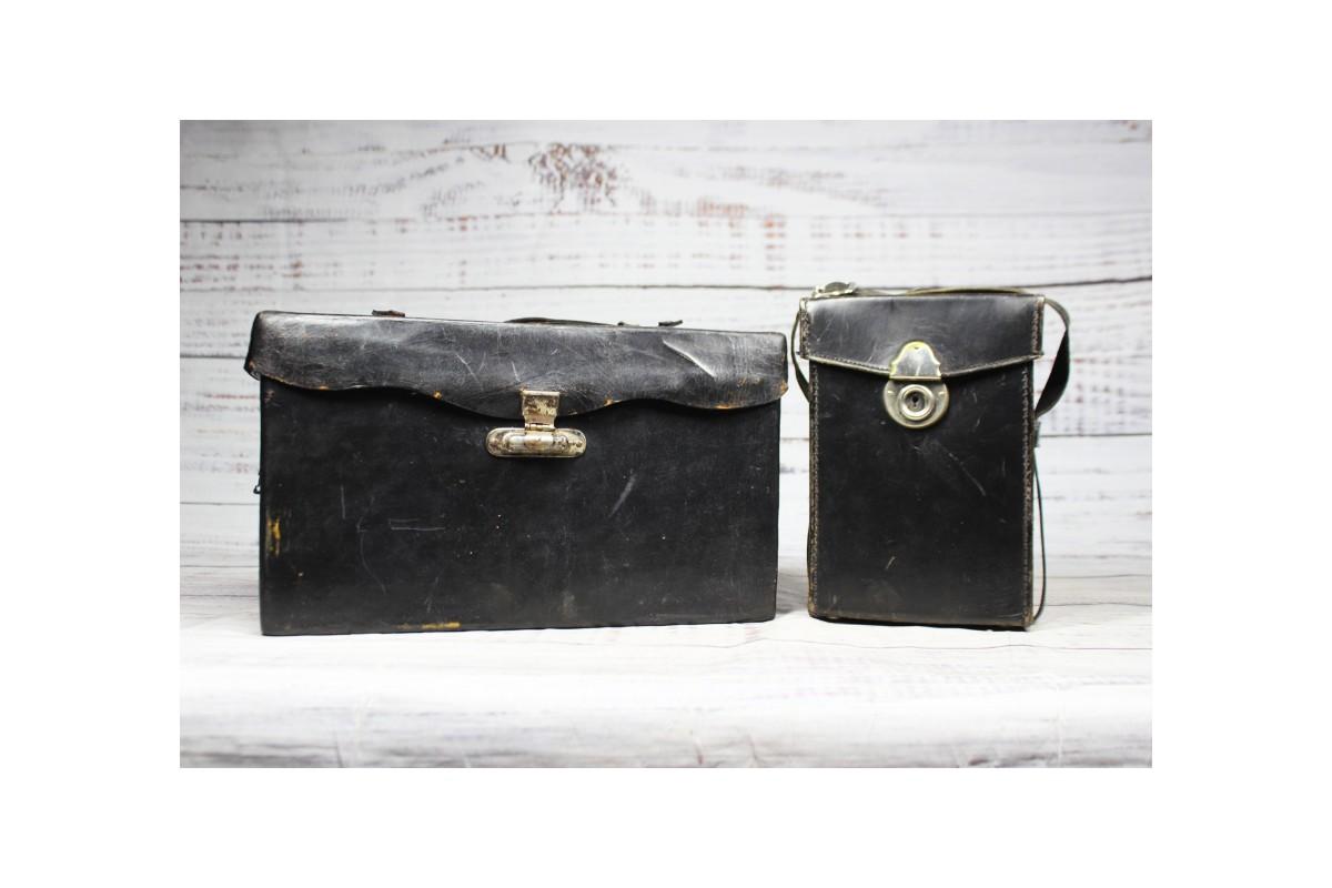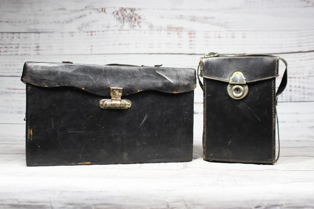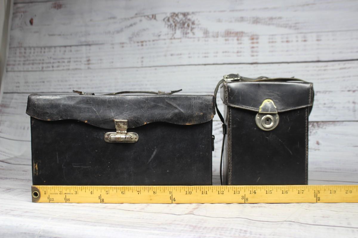 Pair of Antique Camera Travel Bags Cases with Film Adapters & Holders