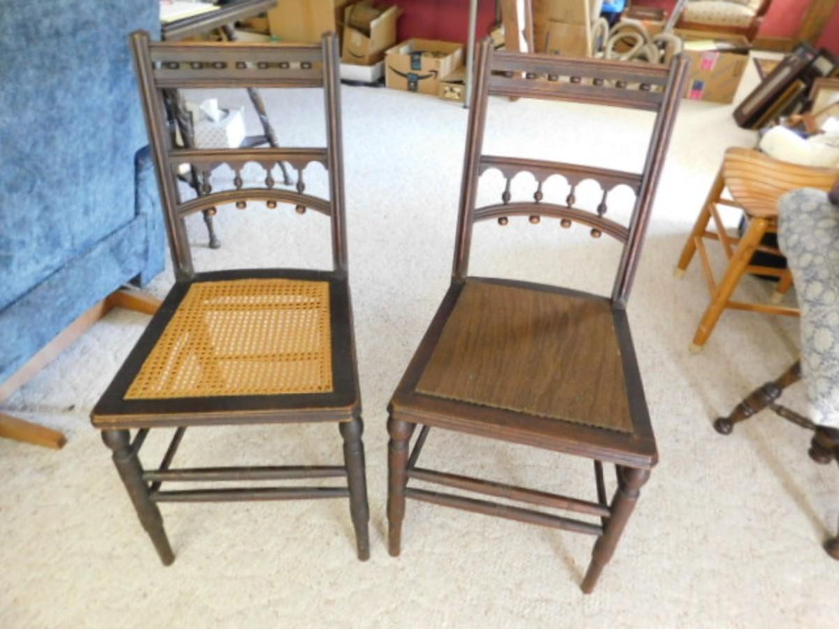 Pair of Antique Cane Chairs one chair has missing cane as shown