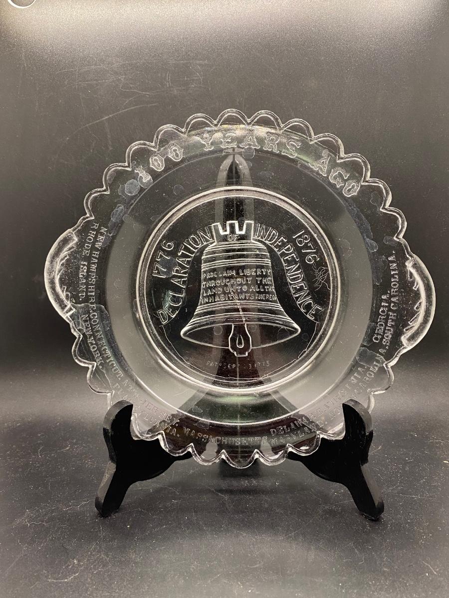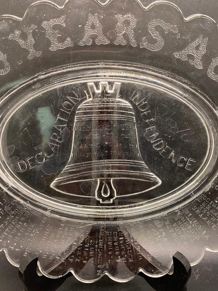 Pair of Antique Declaration of Independence Liberty Bell Commemorative Americana Glass Plates