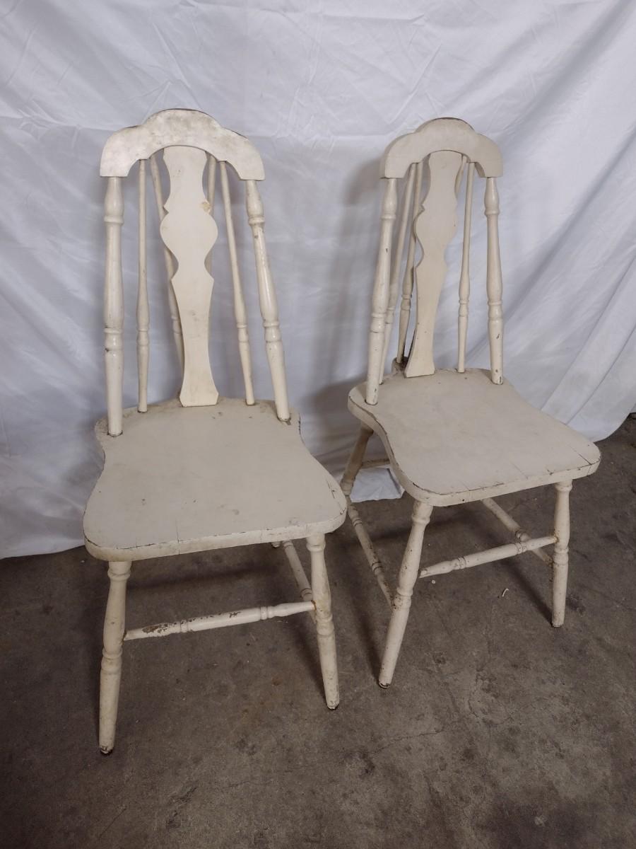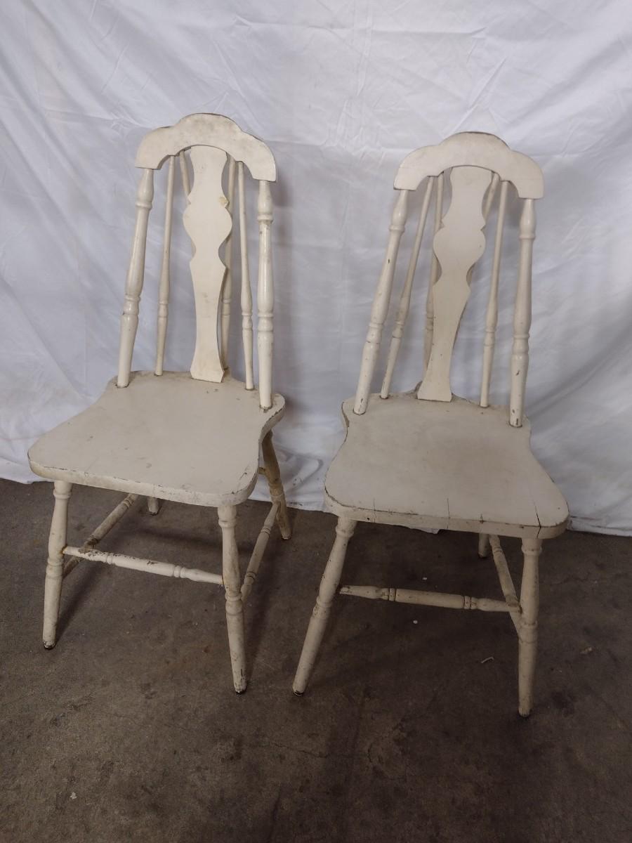 Pair of Antique Farm Chairs. Legs will need to be tightened