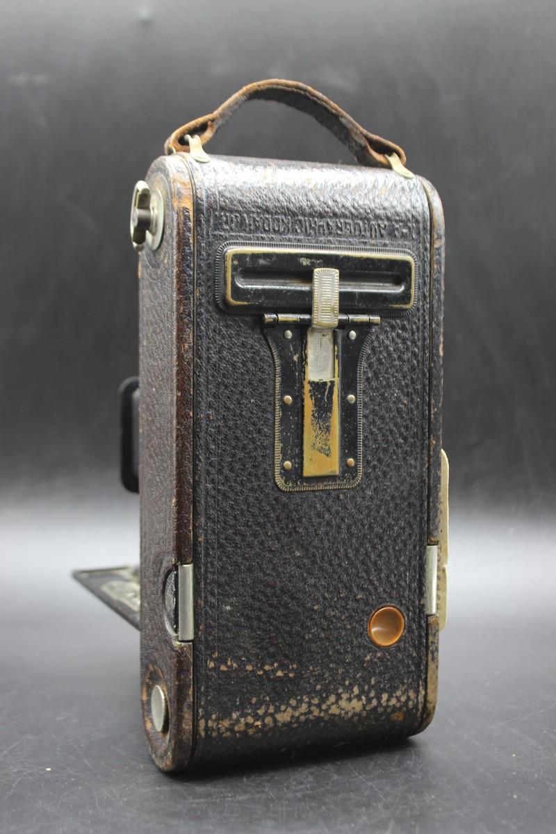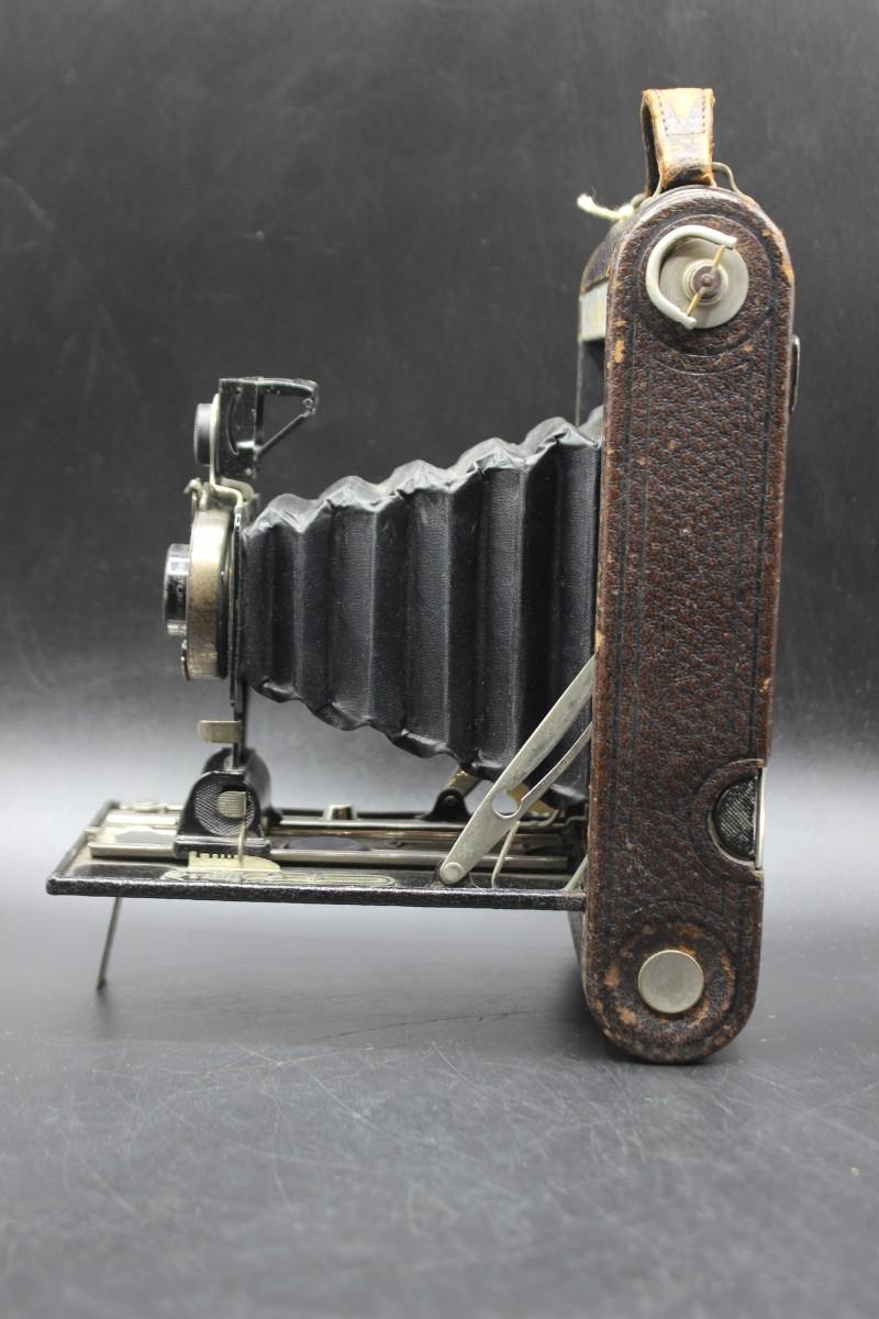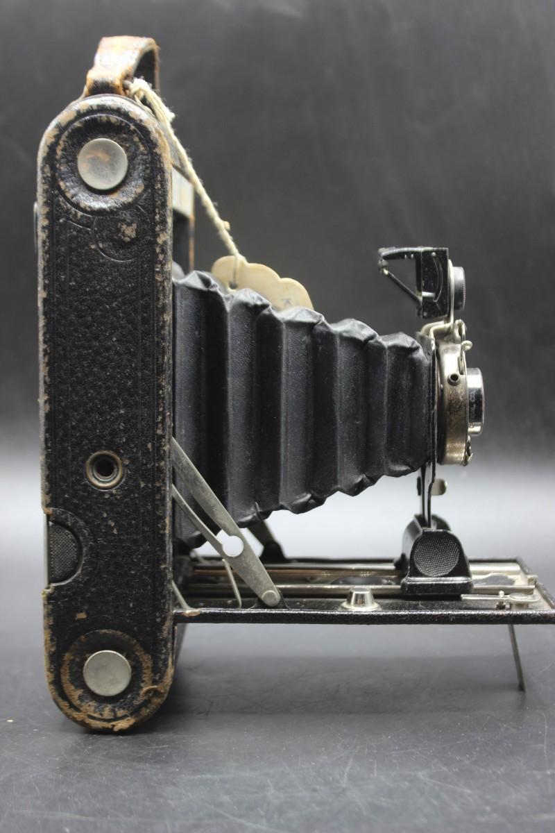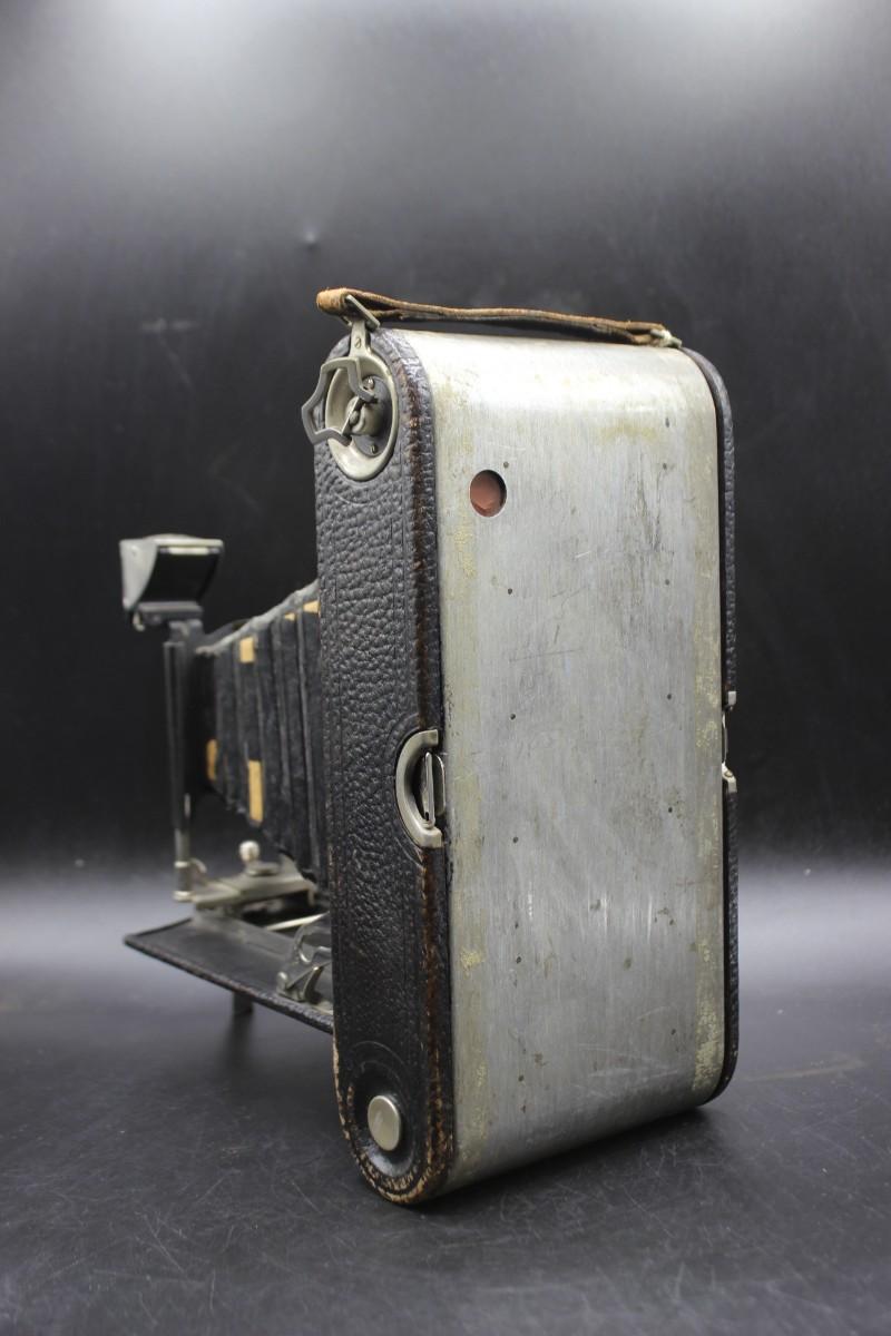 Pair of Antique Folding Kodak Cameras Autographic Junior Rapid Rectilinear & No. 3-A Folding Pocket, there is no lens in the No. 3-A Folding Pocket Camera. There is no other significant damage to the bodies of the cameras and is in overall fair condition. Check pictures for more details and for sizing.