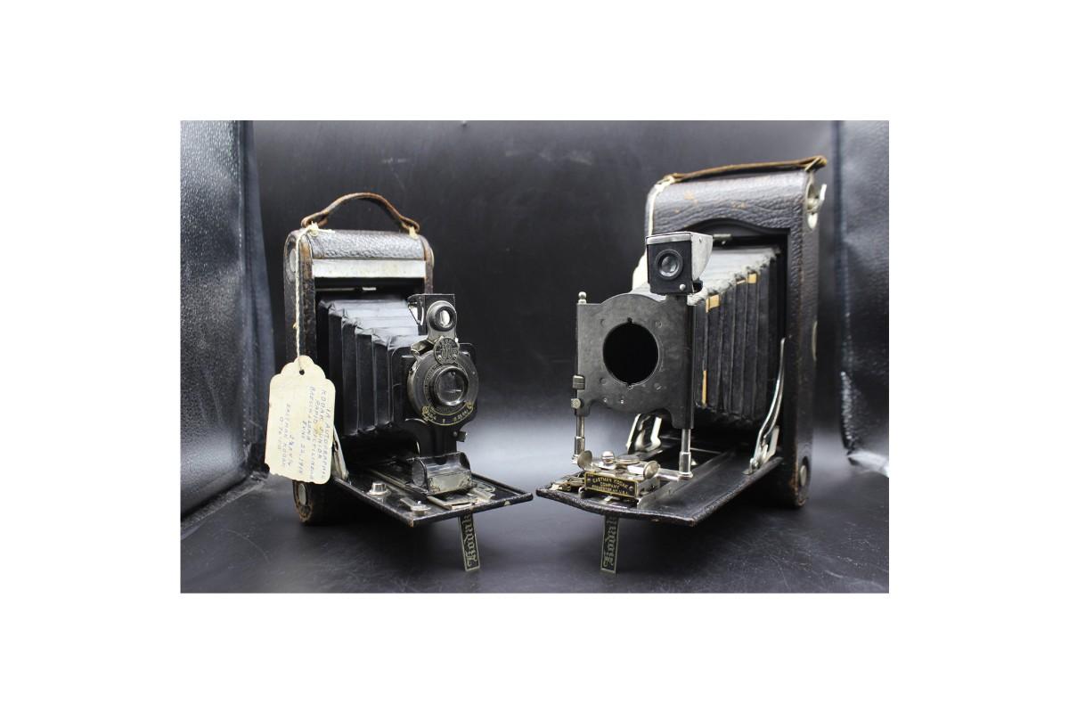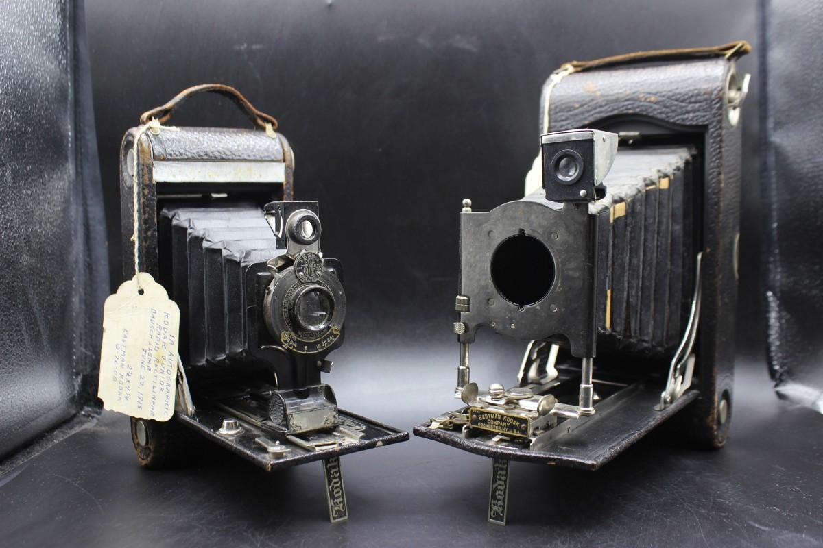 Pair of Antique Folding Kodak Cameras Autographic Junior Rapid Rectilinear & No. 3-A Folding Pocket Camera