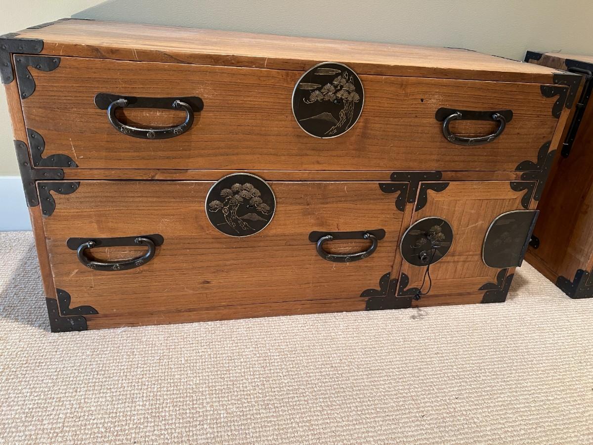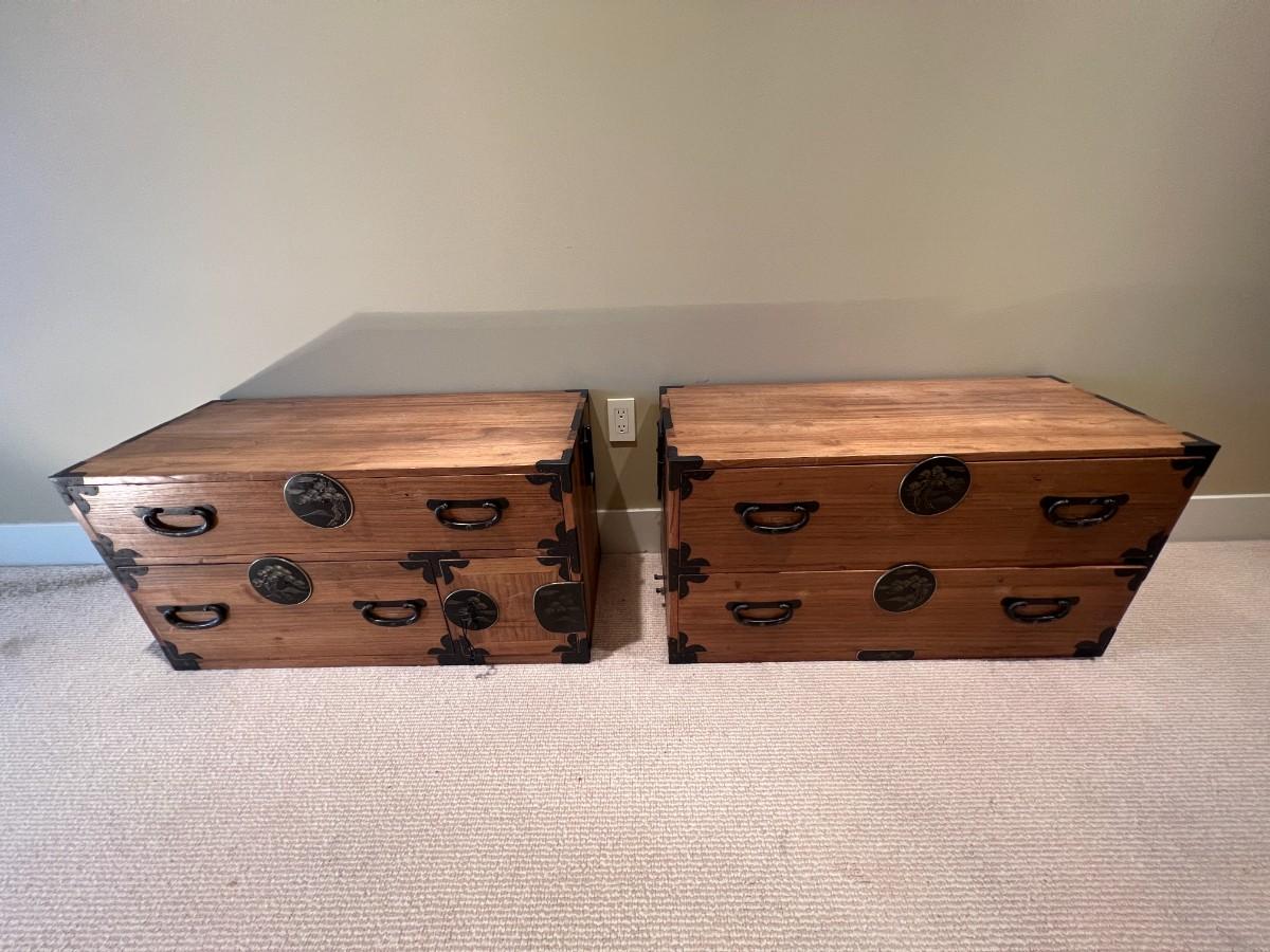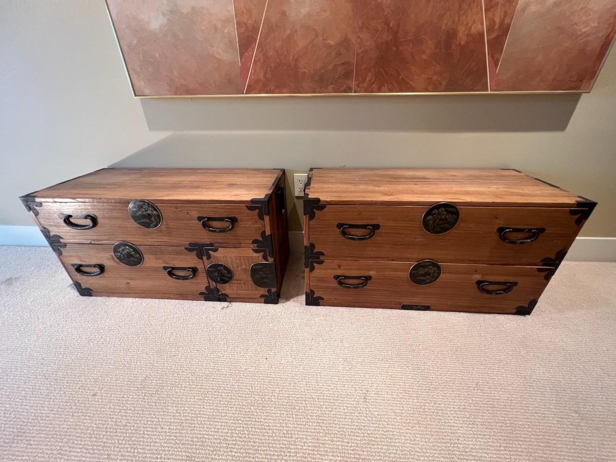 Pair of Antique Japanese Tansu Two Drawer Chests