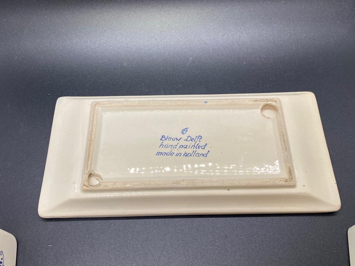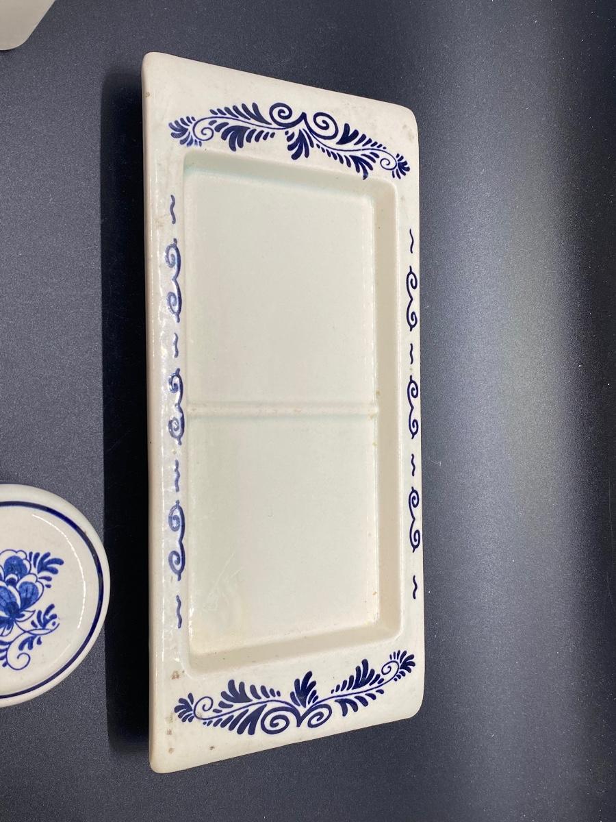 Pair of Antique Made in Holland Hand Painted Delft Blauw Spice Jars with Lids and Tray