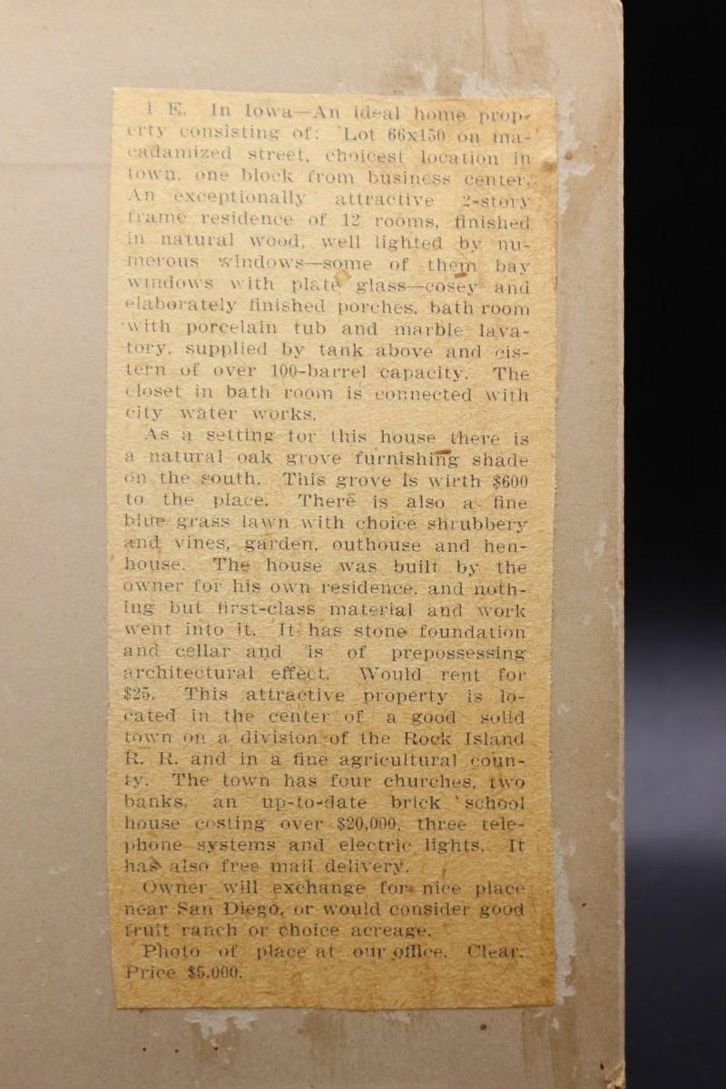 Pair of Antique Matted Photographs of Children and a House with the Original Newspaper Listing