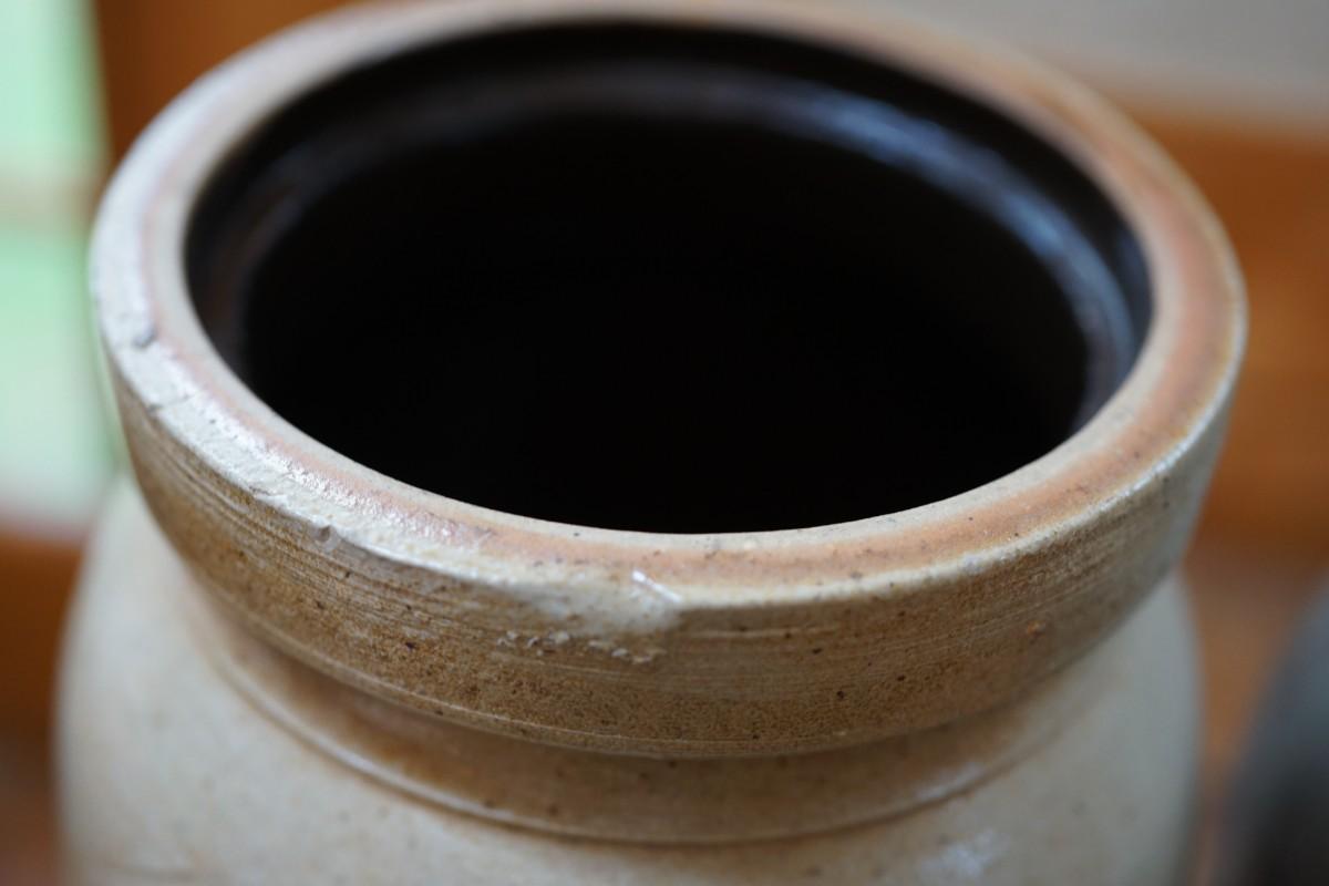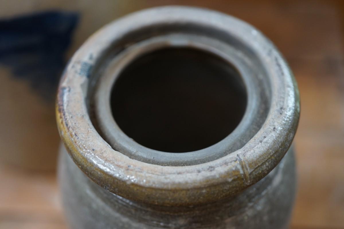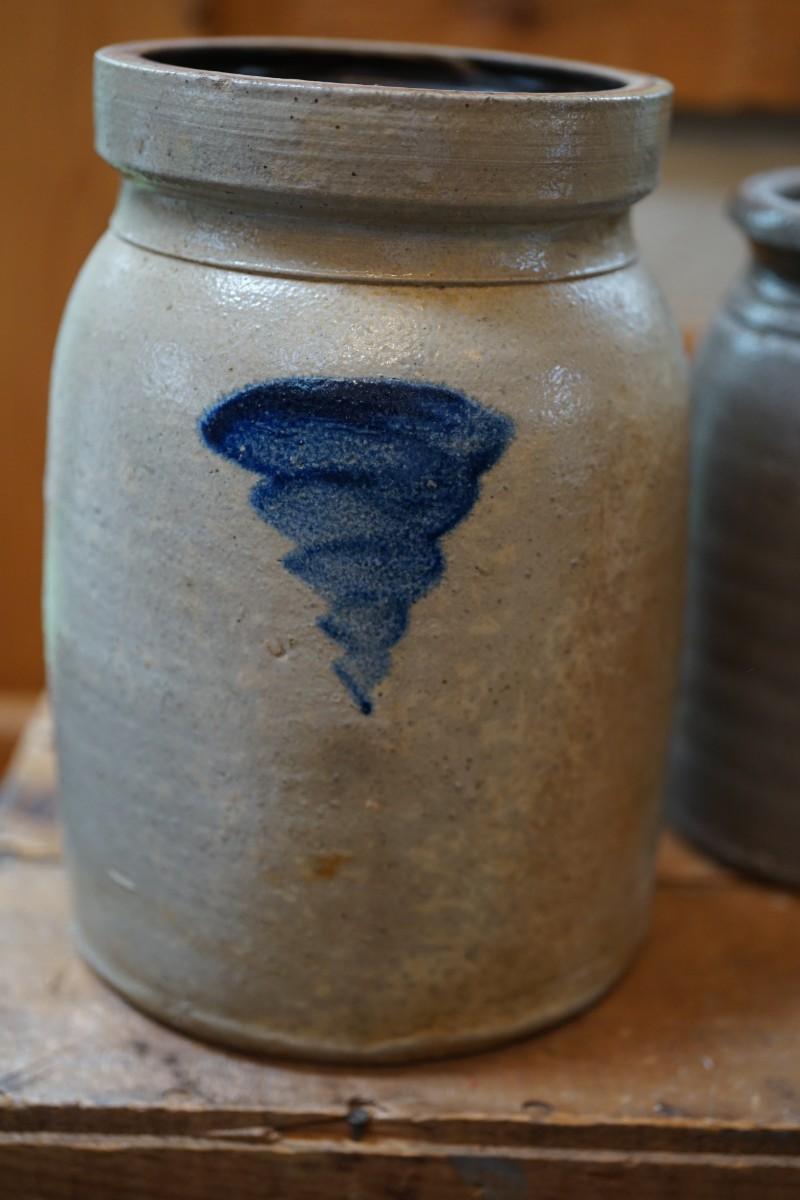 the second canning crock 9 1/2" with small repair chip on rim ,