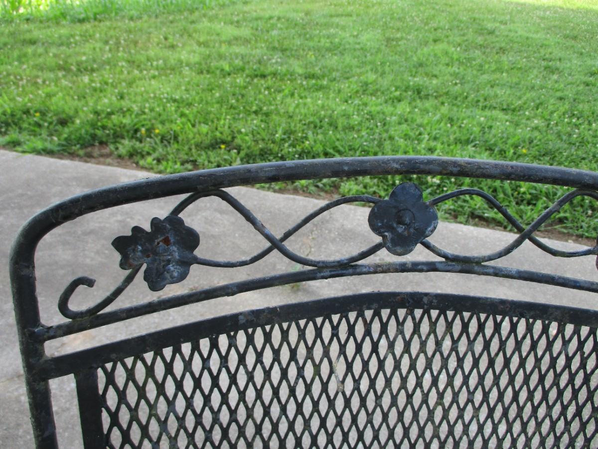 Pair Of Antique Wrought Iron and Mesh Design Outdoor Patio Chairs #1 of 4
