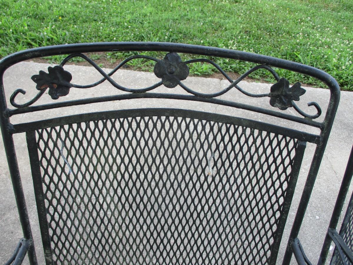 Pair Of Antique Wrought Iron and Mesh Design Outdoor Patio Chairs #2 of 4