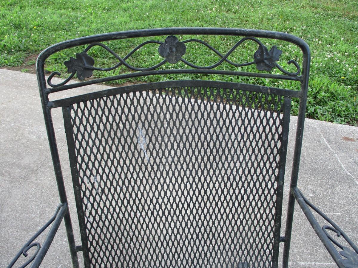 Pair Of Antique Wrought Iron and Mesh Design Outdoor Patio Chairs #3 of 4