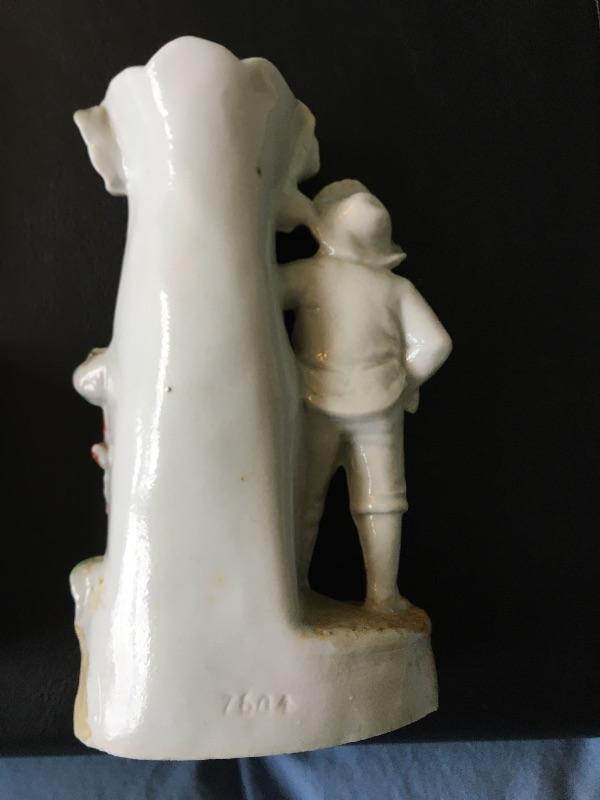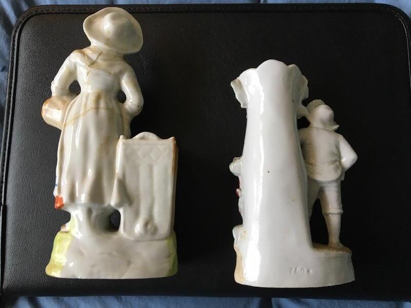 Pair of Antique Porcelain Figural Bud Vases 8” & 6.5”
