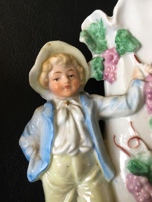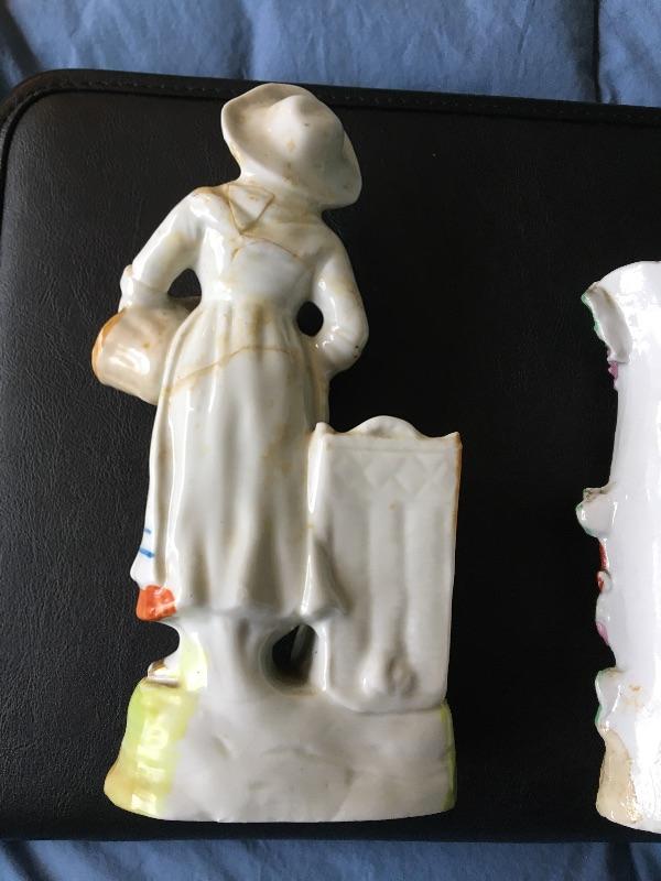 Pair of Antique Porcelain Figural Bud Vases 8” & 6.5”