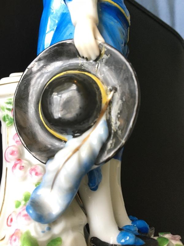 Blue Boy has repair and chip to one flower pedal. See pictures for details.