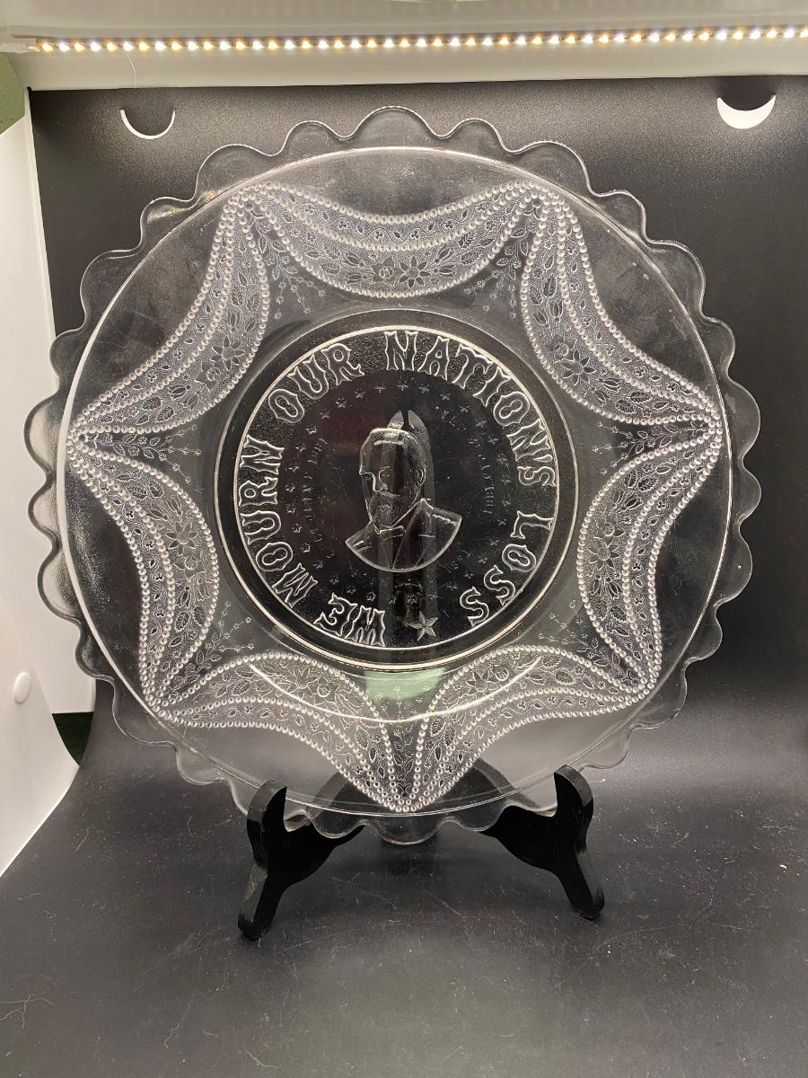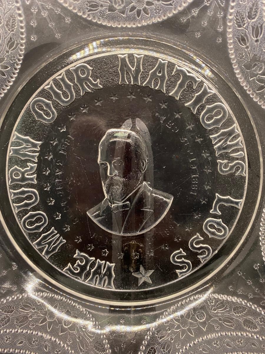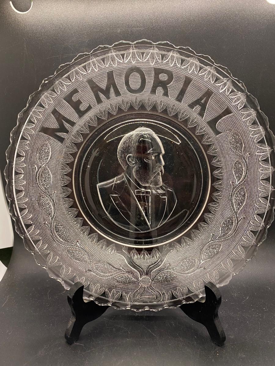 Pair of Antique President James Garfield Memorial Commemorative Americana Glass Plates, there are no significant cracks or chips to glass and is in good displayable condition. Check pictures for more details and for sizing.