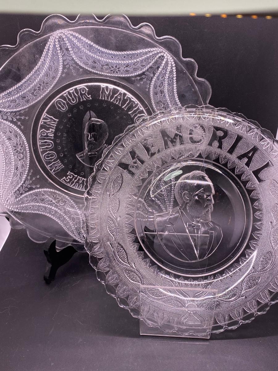 Pair of Antique President James Garfield Memorial Commemorative Americana Glass Plates