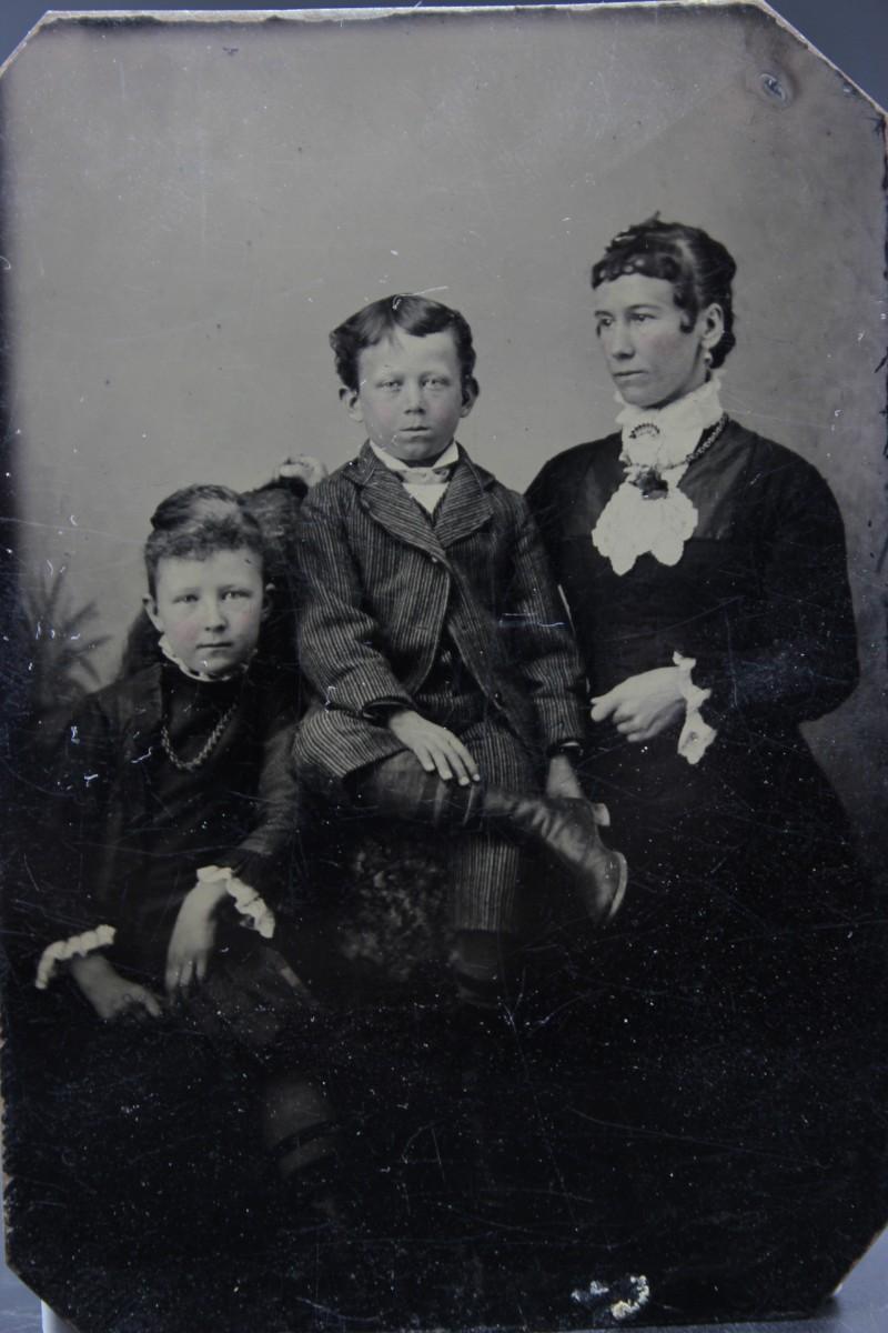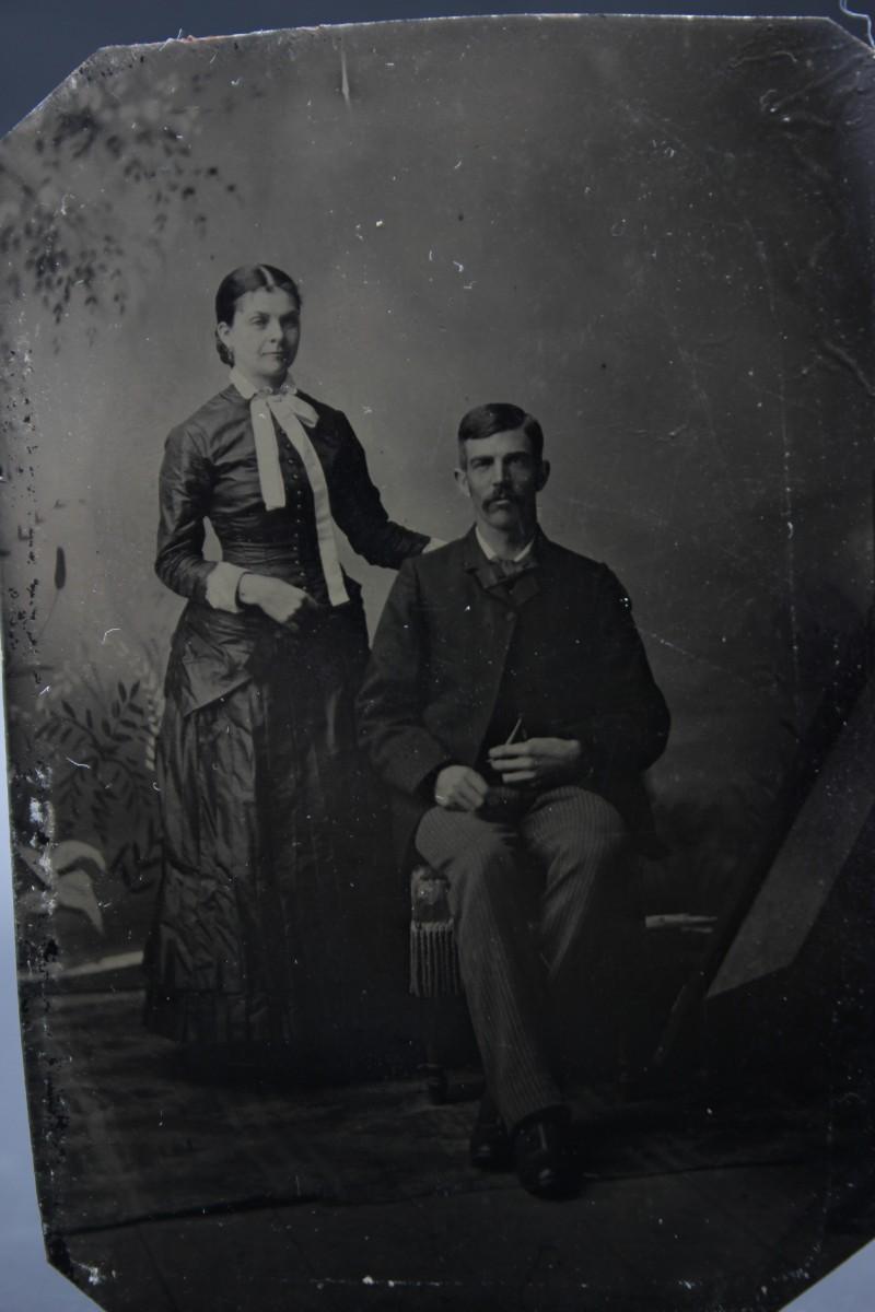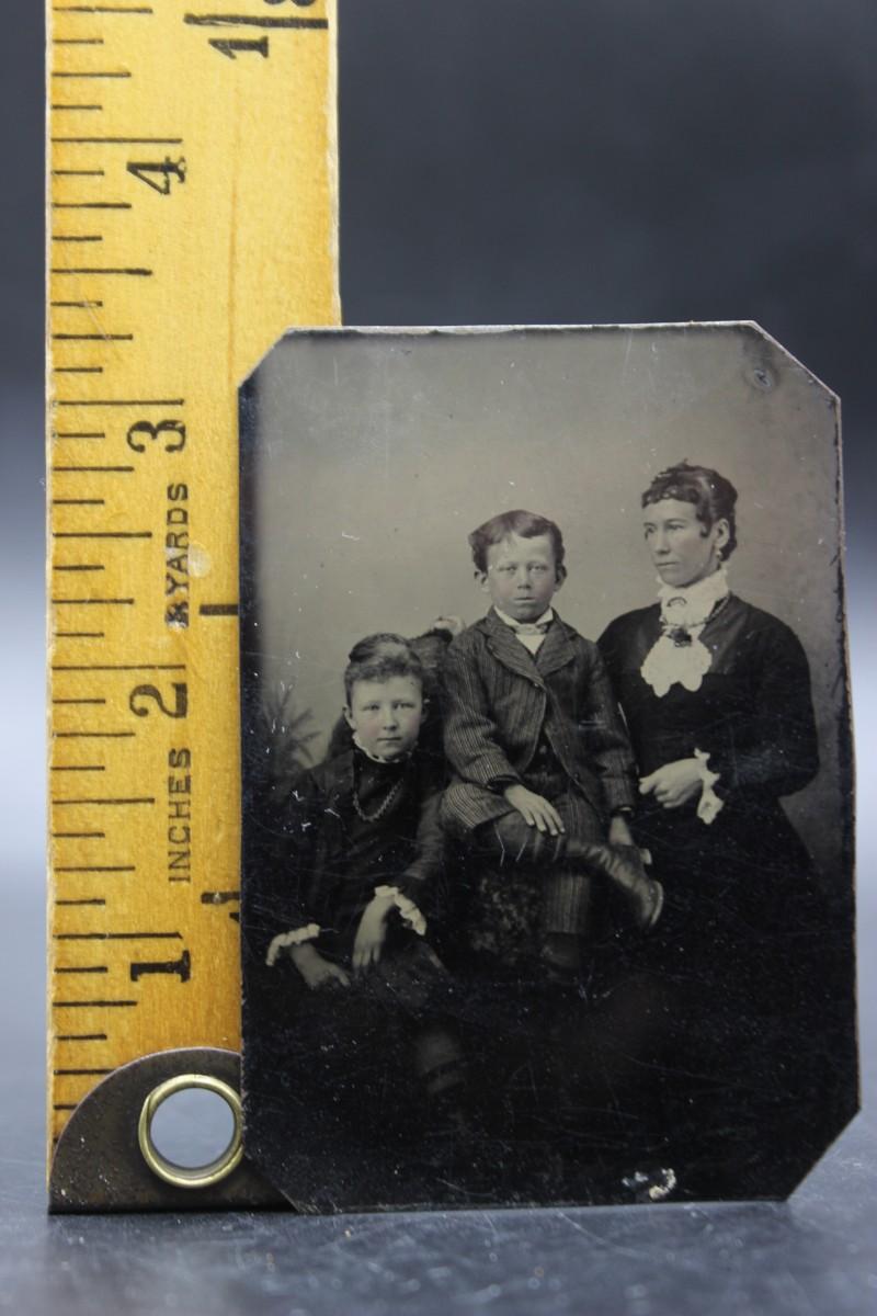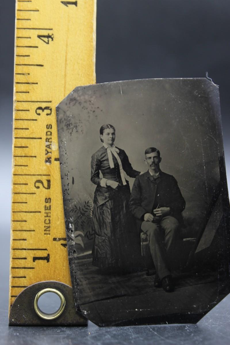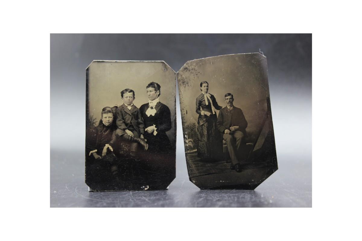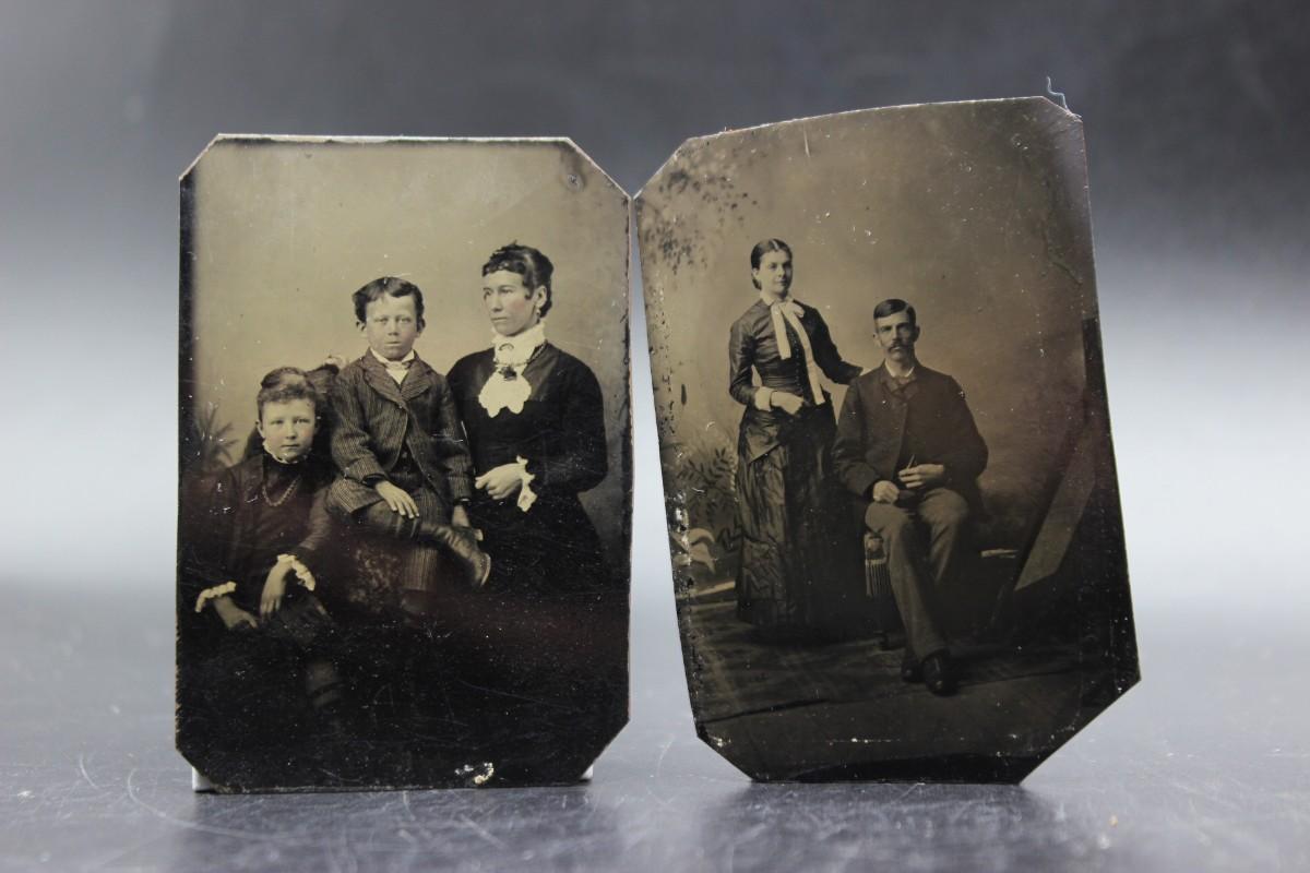 Pair of Antique Tintype Ambrotype Photographs of a Well Dressed Family & Couple