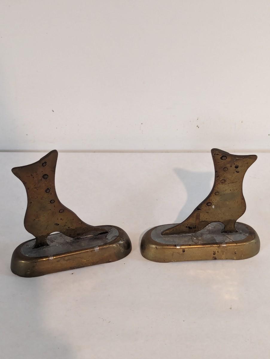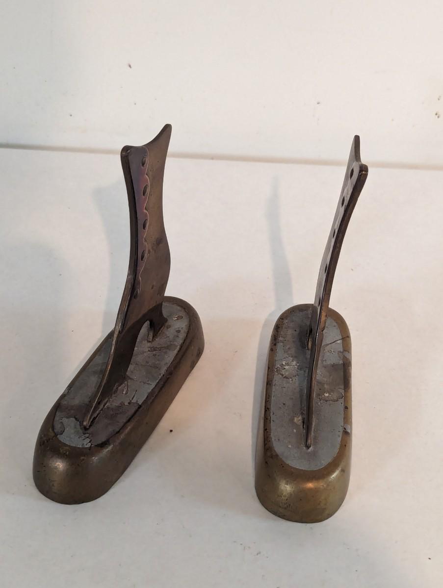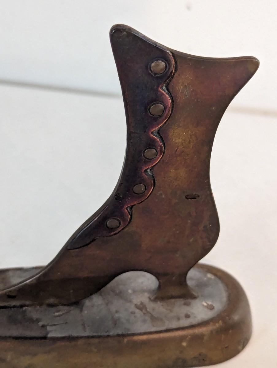 Pair Of Antique Vintage Victorian Brass Mantle Ladies Shoes