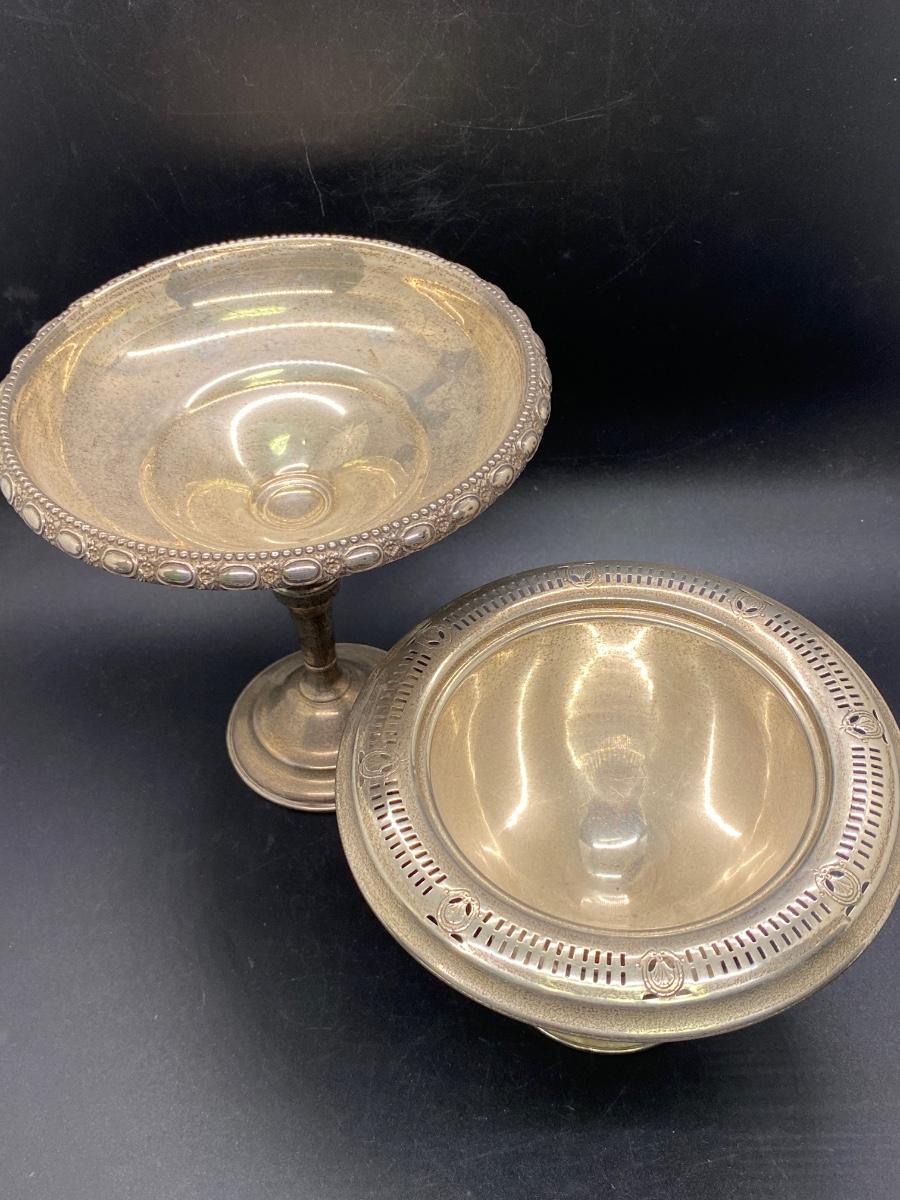 Pair of Antique Weighted Sterling Silver Pedestal Candy Dish Compote