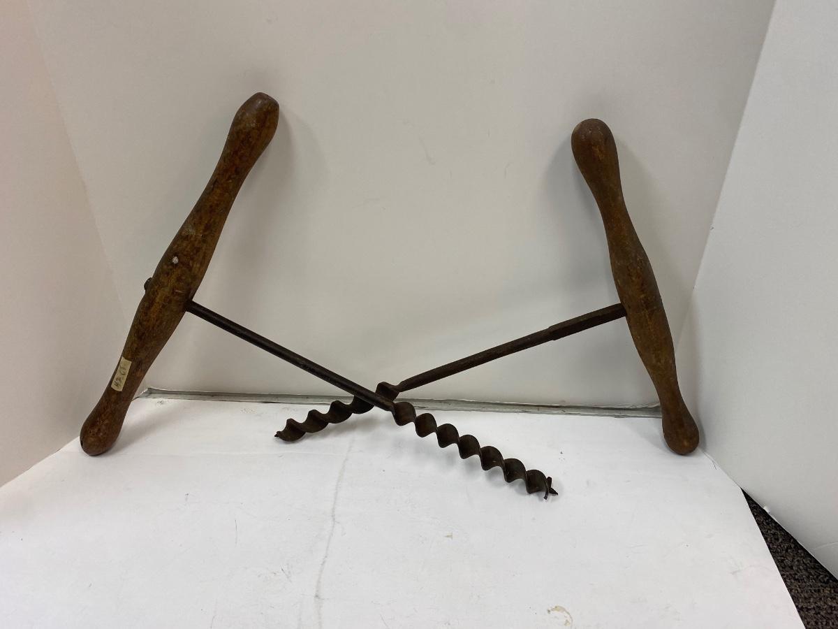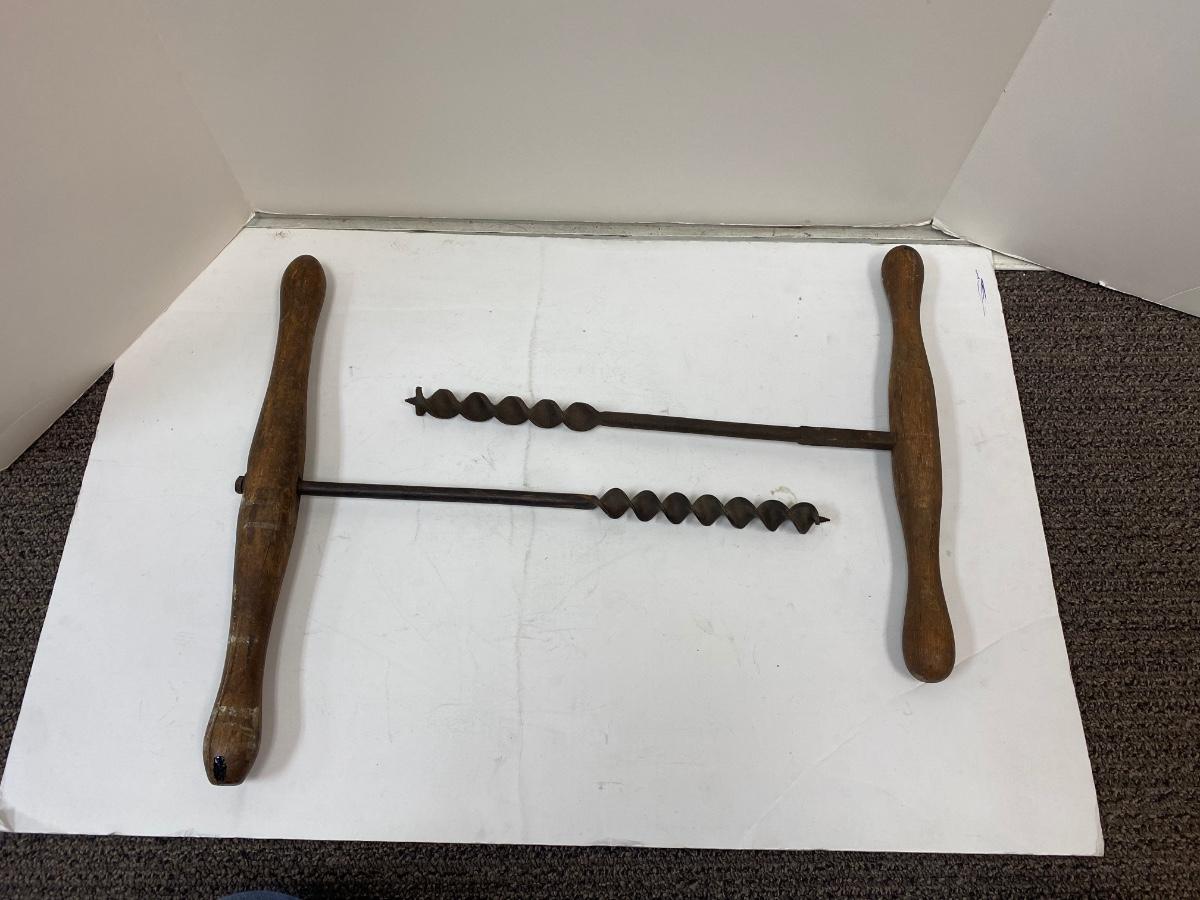 Pair of Antique Wood Handle Screw Tip Auger Drill Bits