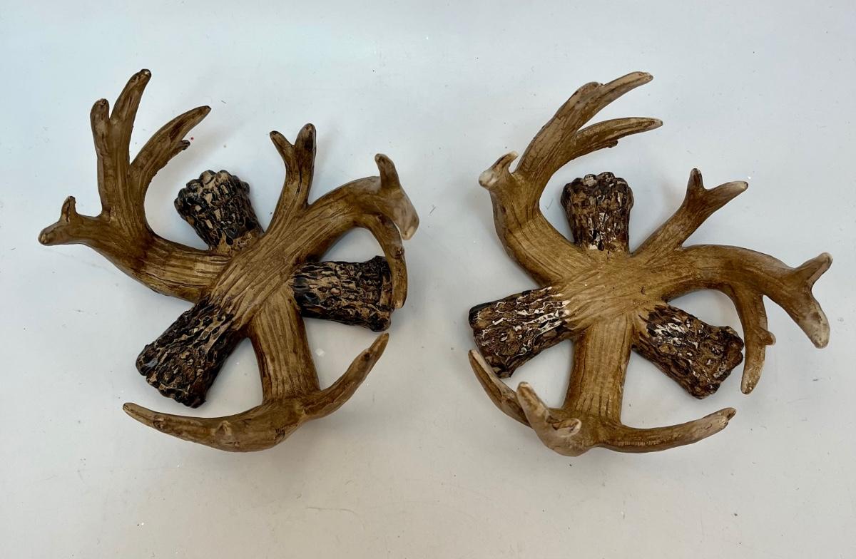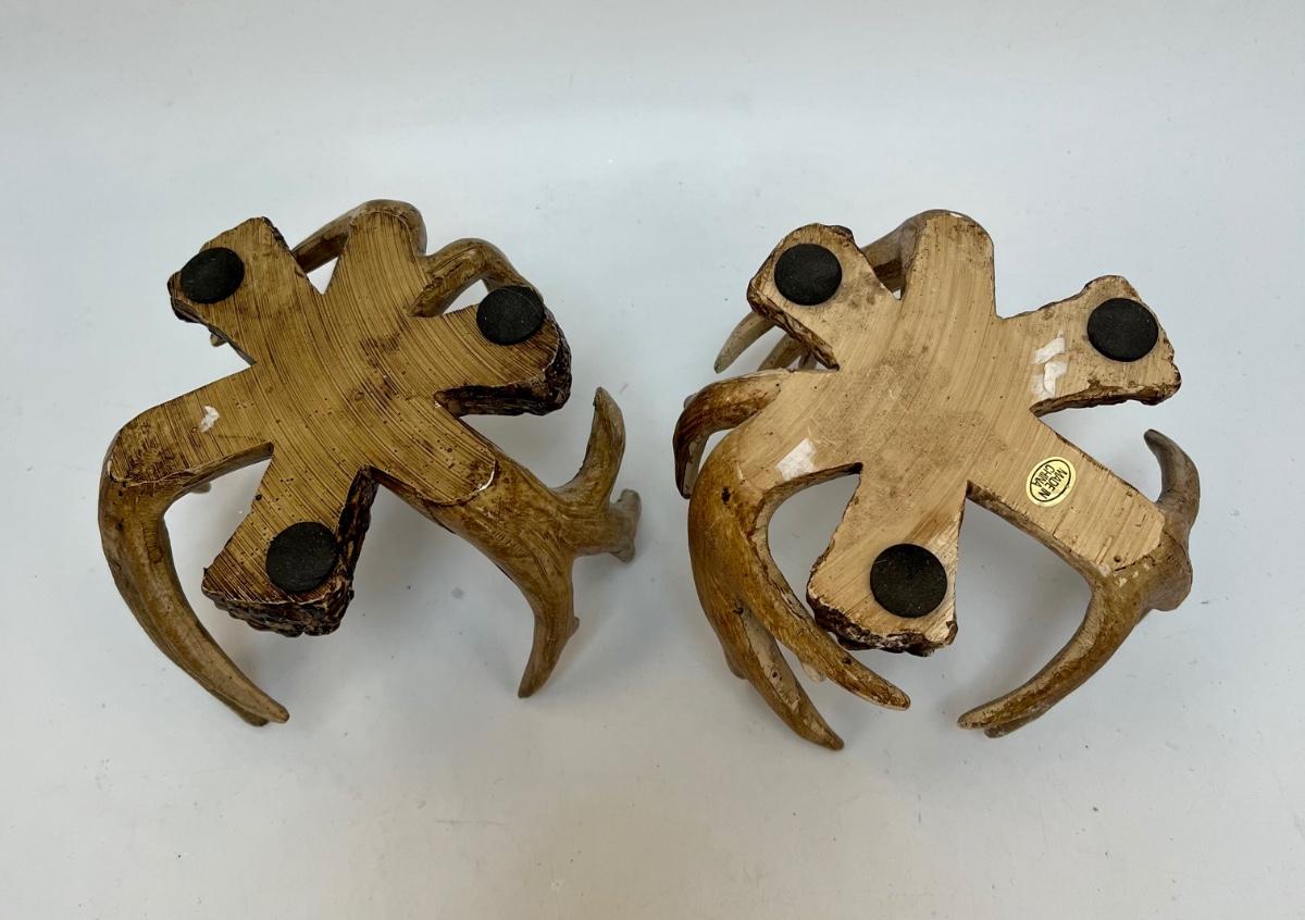 Pair of Antler Candleholders Christmas Seasonal Rustic Decor