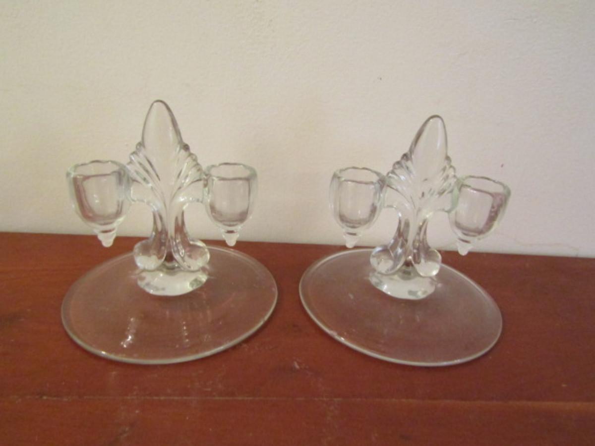 Pair of Art Deco Design Double Candle Holders- Approx 5" Tall