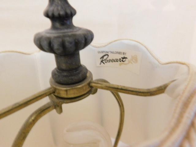 Pair of Art Deco Lamps with Metal Posts and French Style Shades Shades 20" shades may need to be cleaned