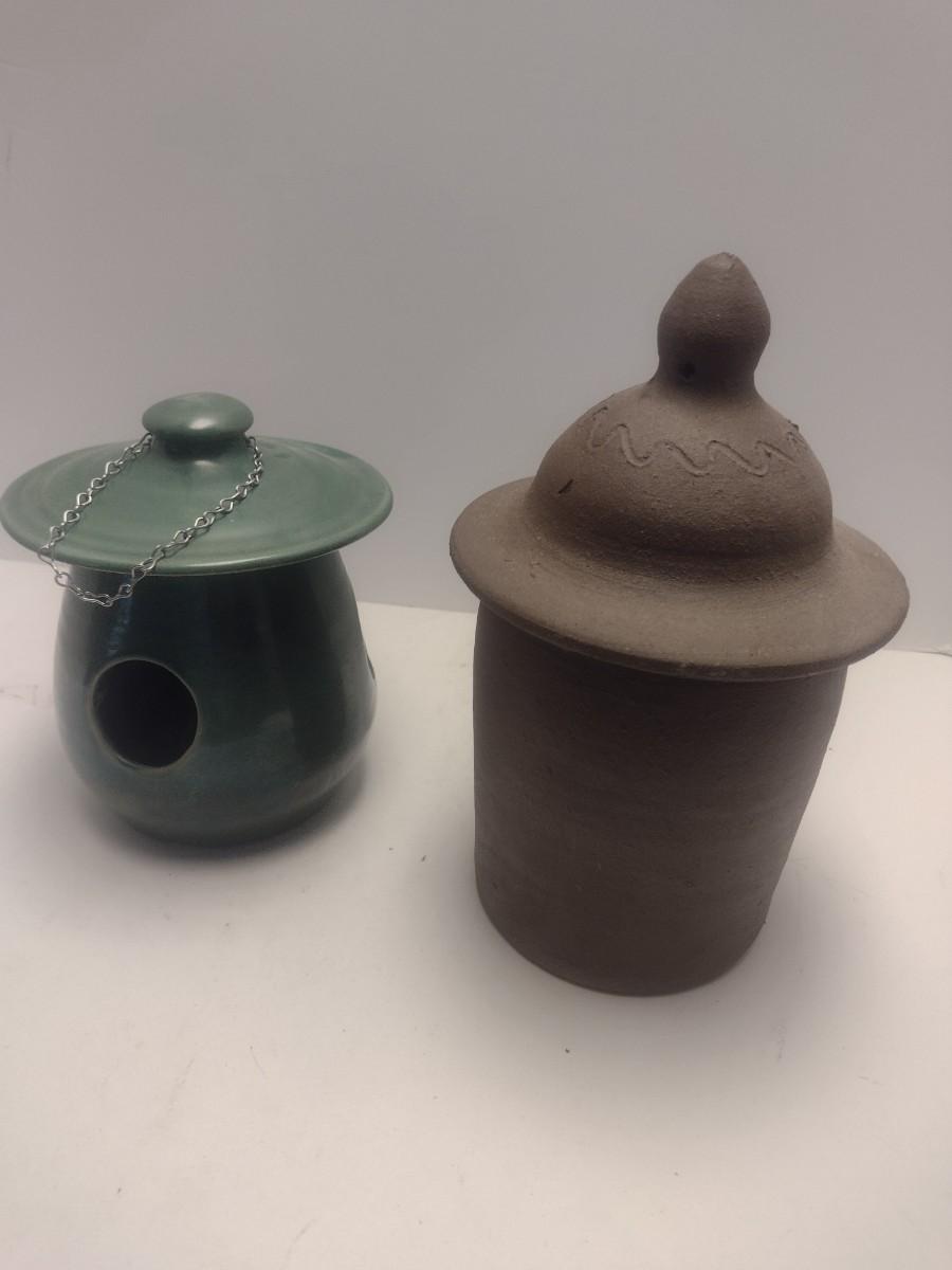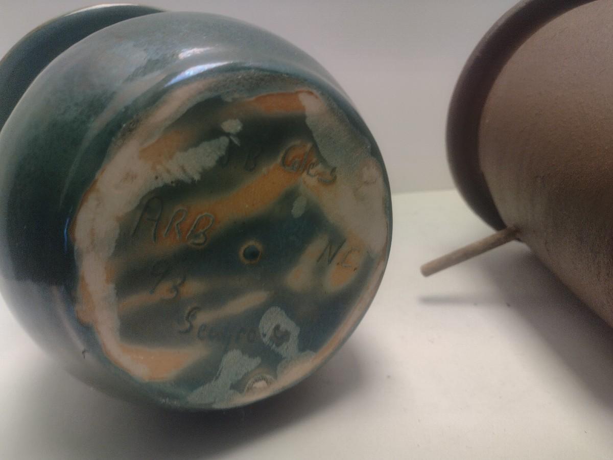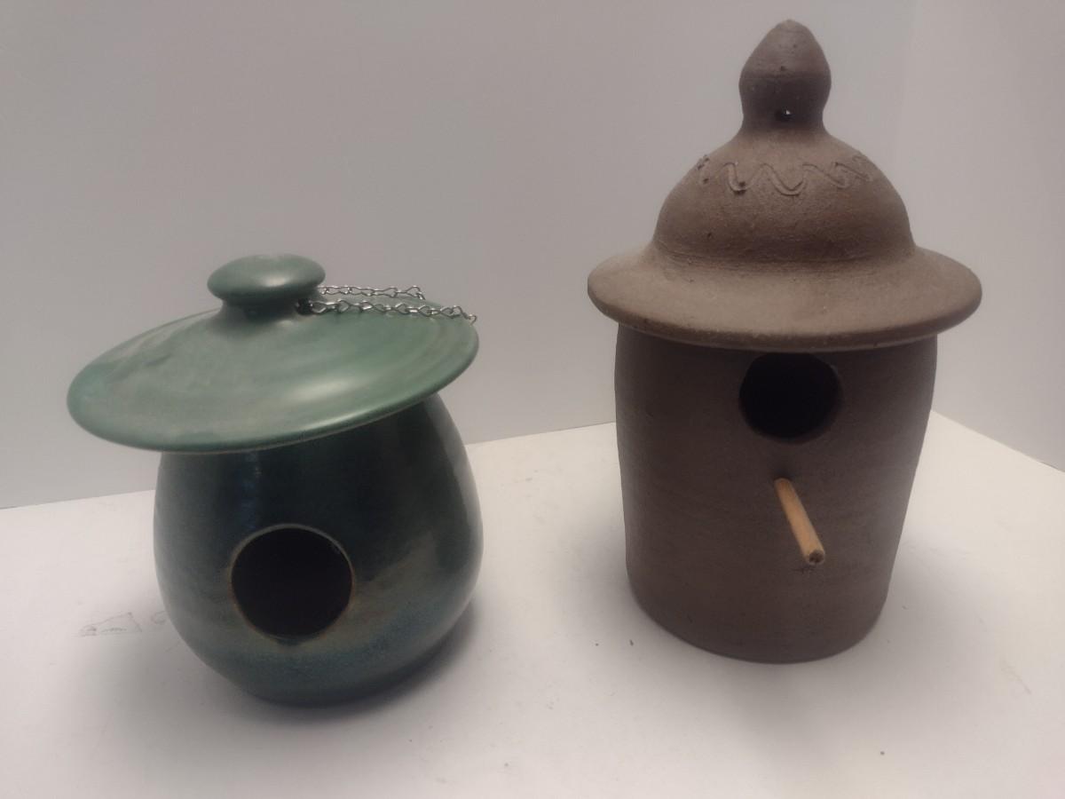 Pair of Art Studio Pottery Bird Feeders Includes Seagrove