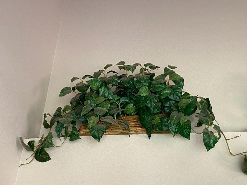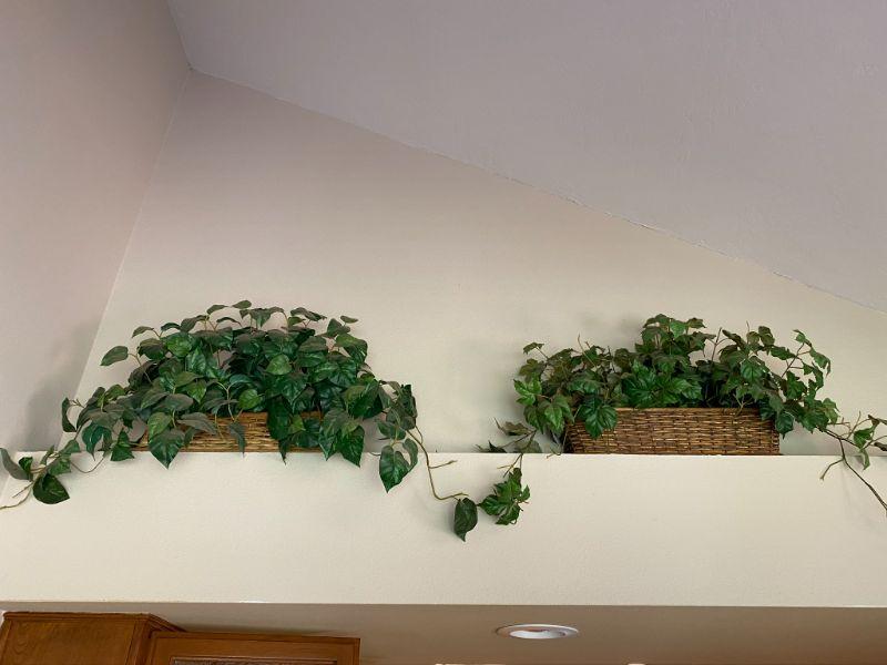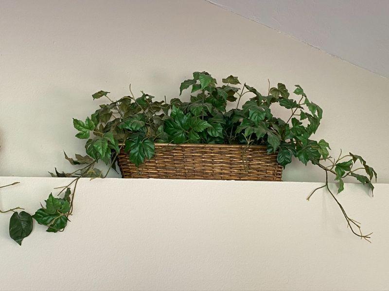 Nice pair of artificial plants. In matching narrow baskets. May be a little dusty.