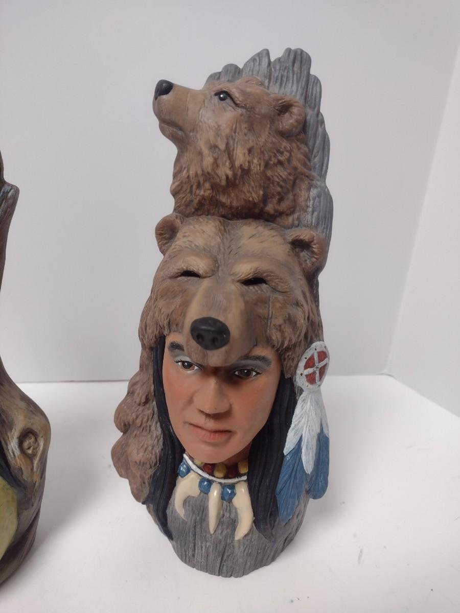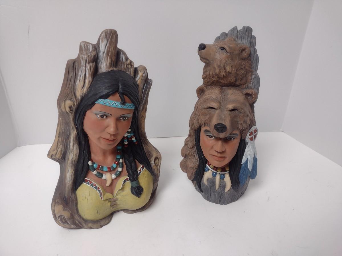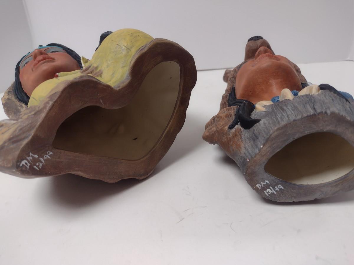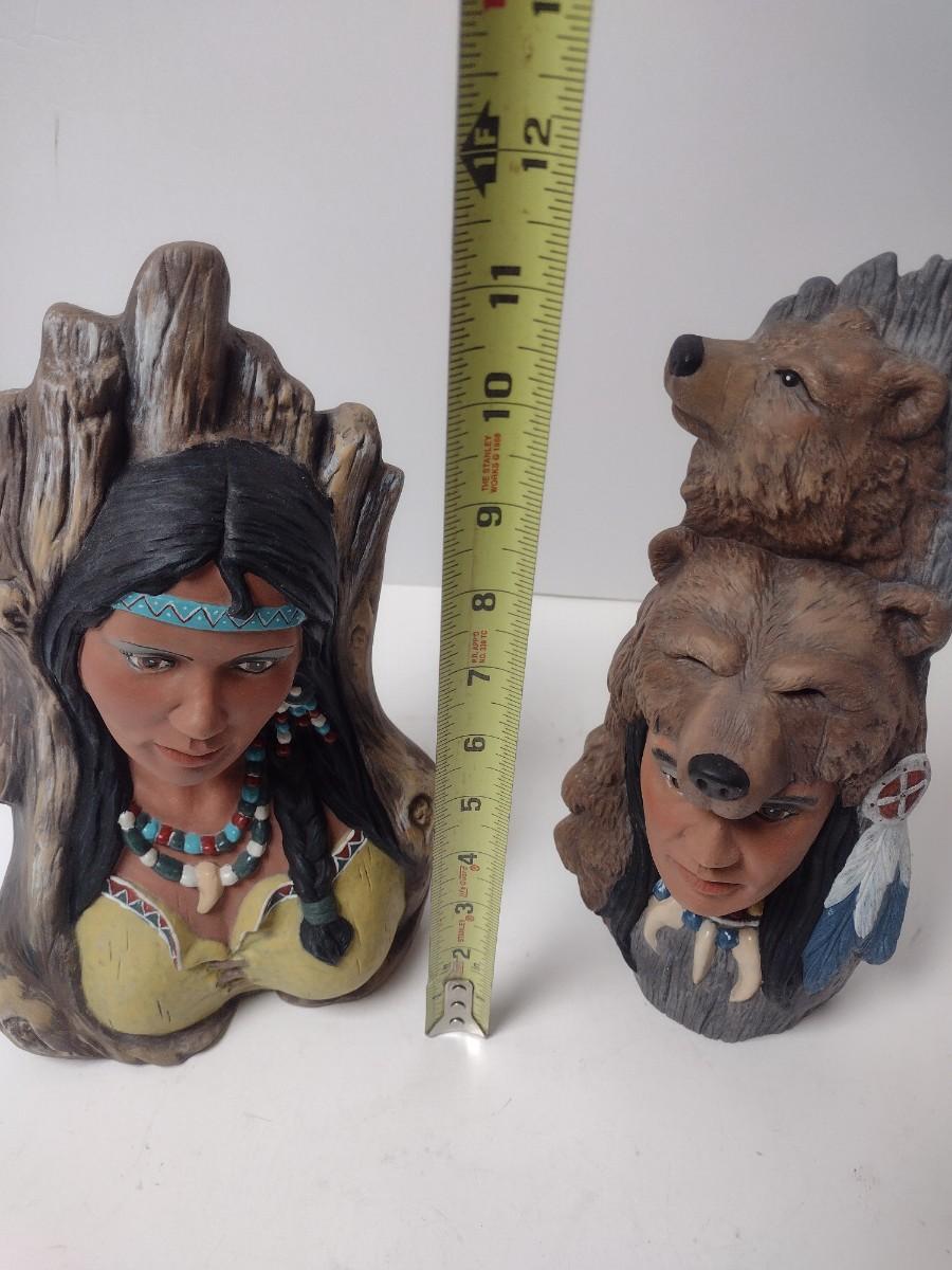 Pair of Artist Signed Ceramic Native American Figural Statuettes