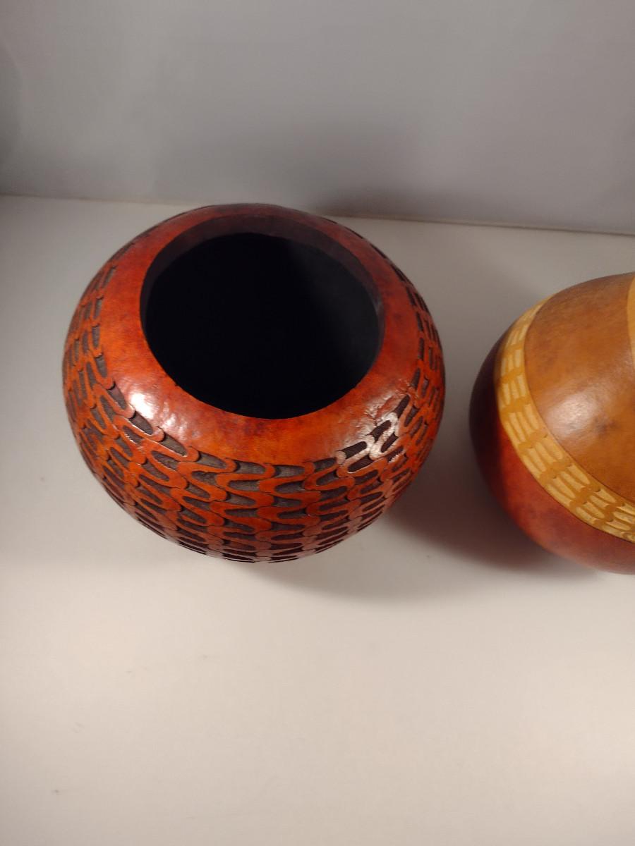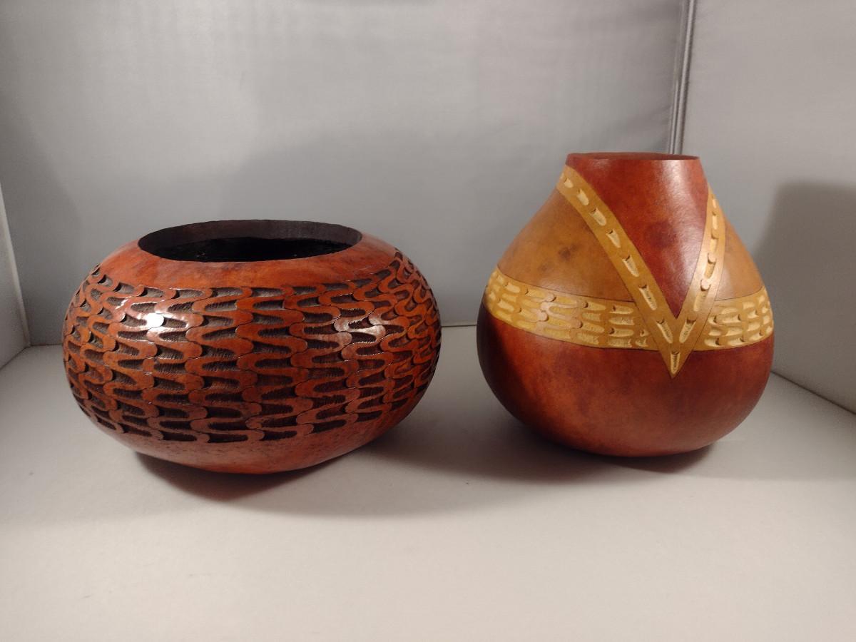 Pair of Artistically Carved Gourds by Debbie Skelly (Waynesville, NC)